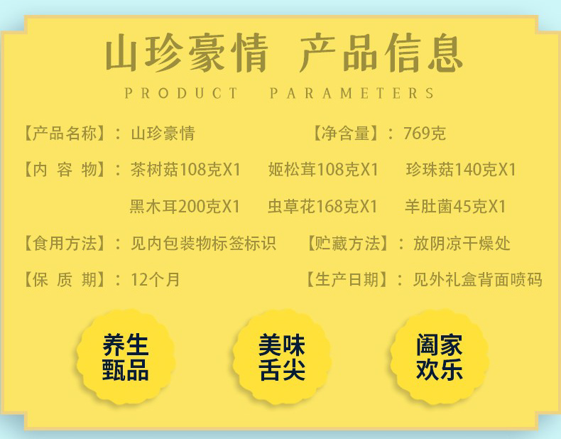 天生好果 山珍豪情菌菇干货礼盒769g 769g 769g 无色(单位:包)
