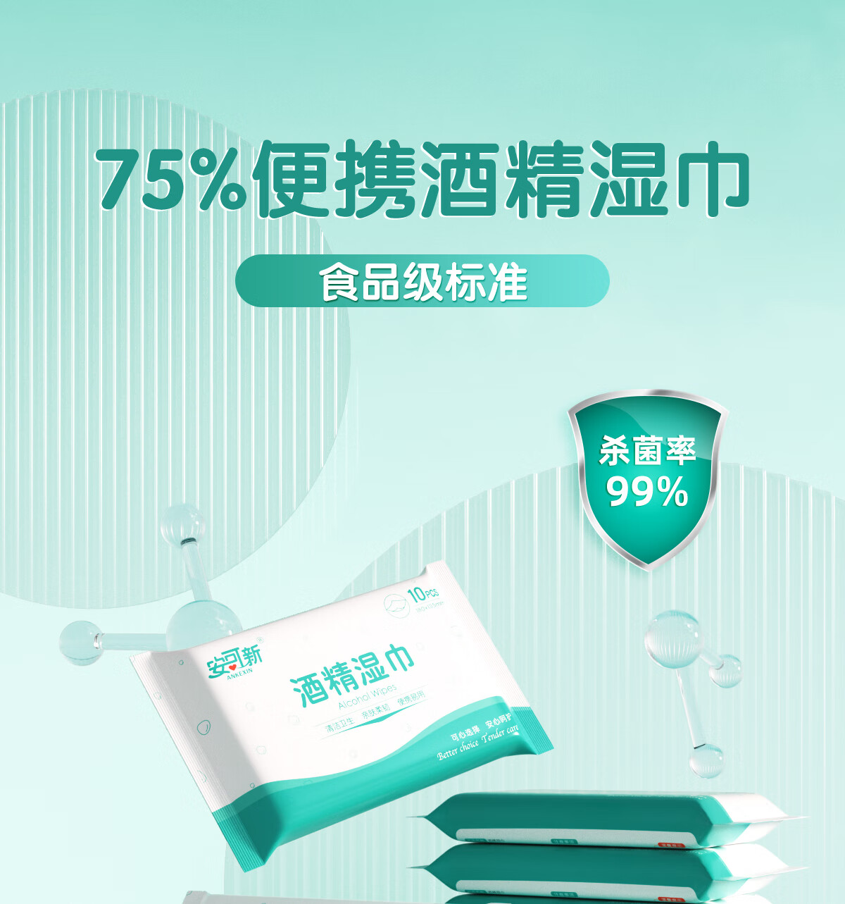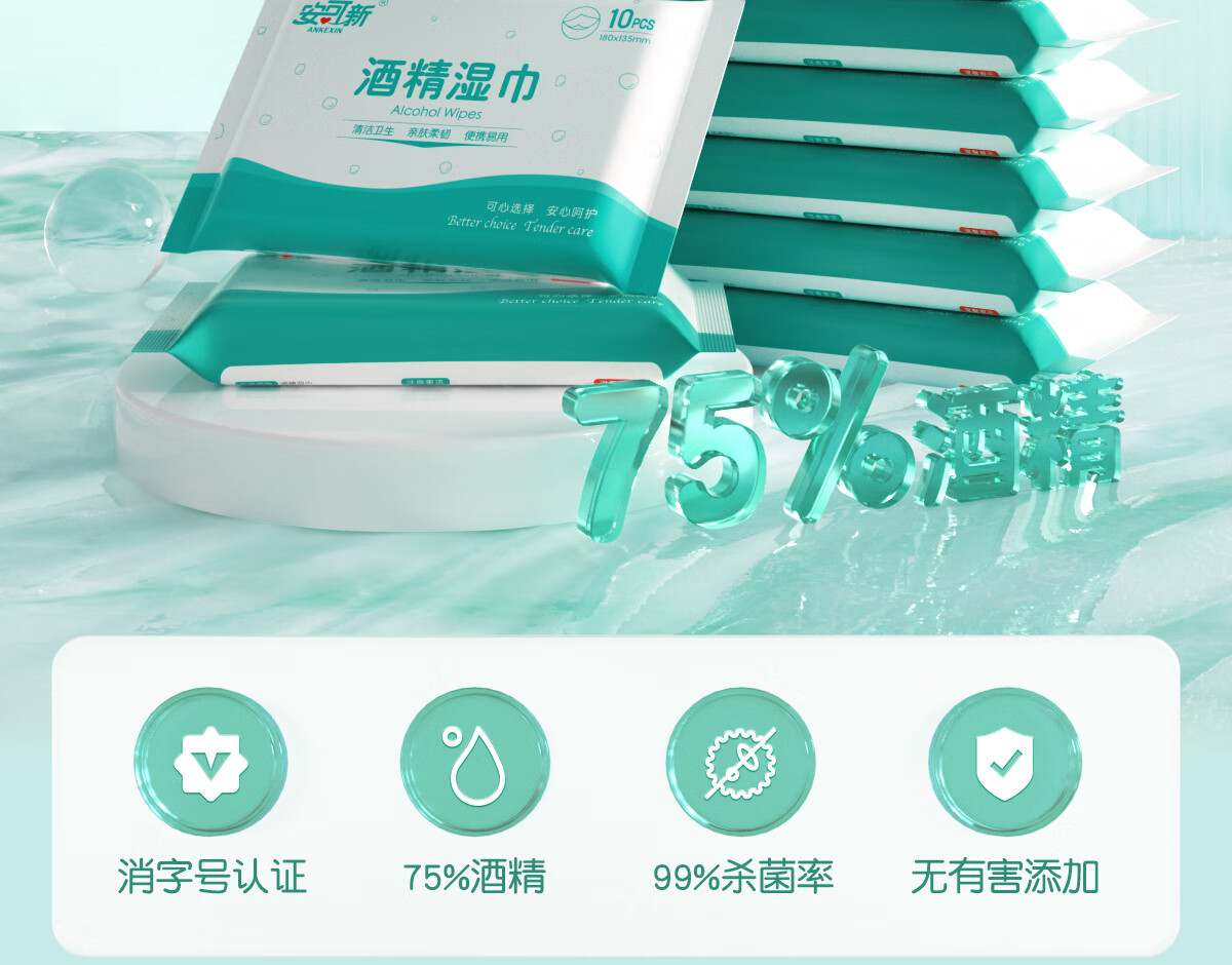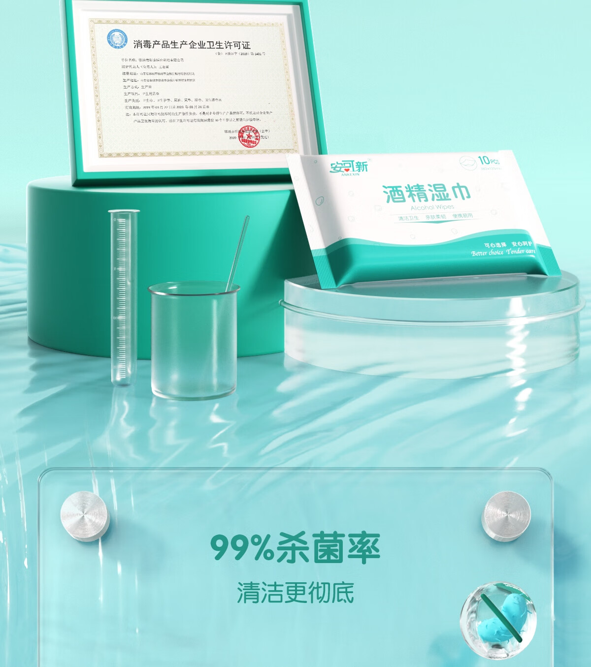 安可新 食品级5%酒精湿巾便携装 AKX-5168-30 10抽*30包 白色(单位:组)
