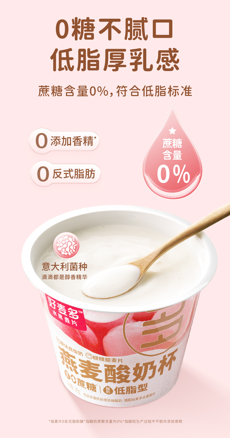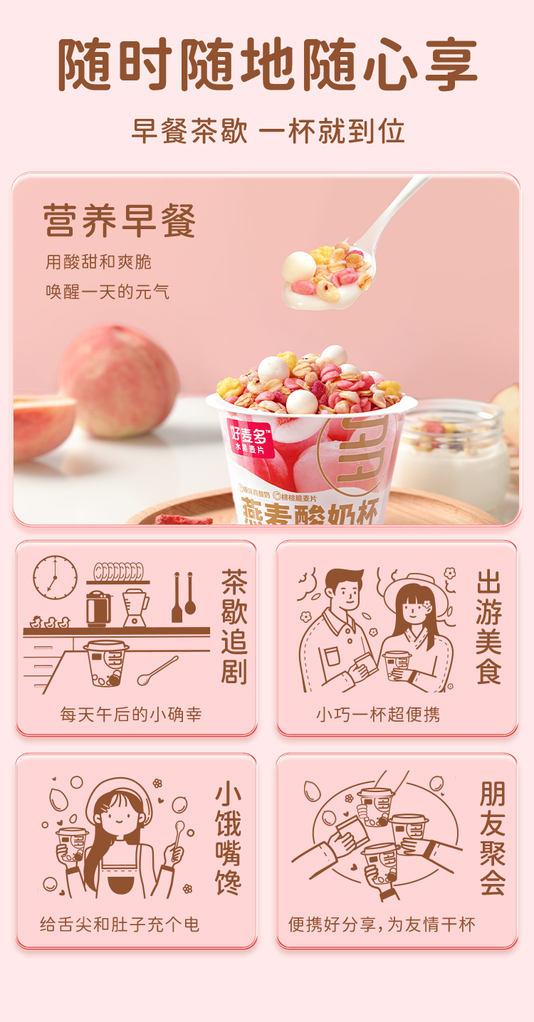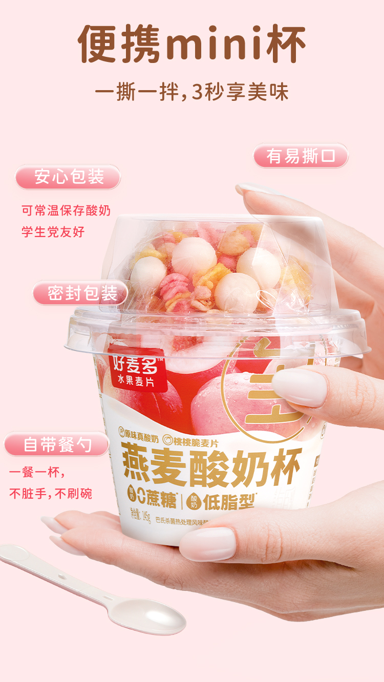 好麦多(HONlife) 燕麦搅拌酸奶碗杯 HSX129 0蔗糖桃桃酸奶杯(145g+20g)*8杯 混色(单位:盒)