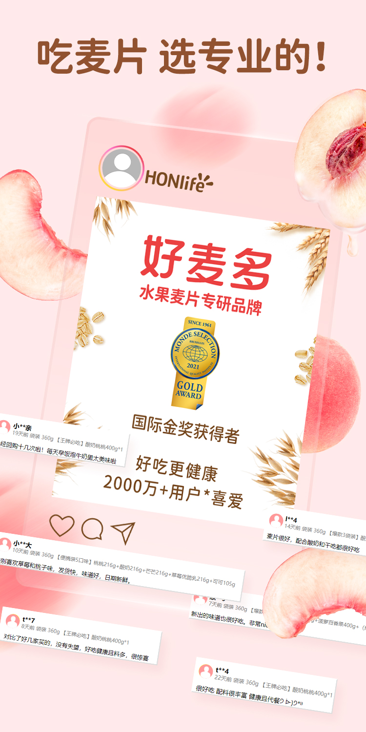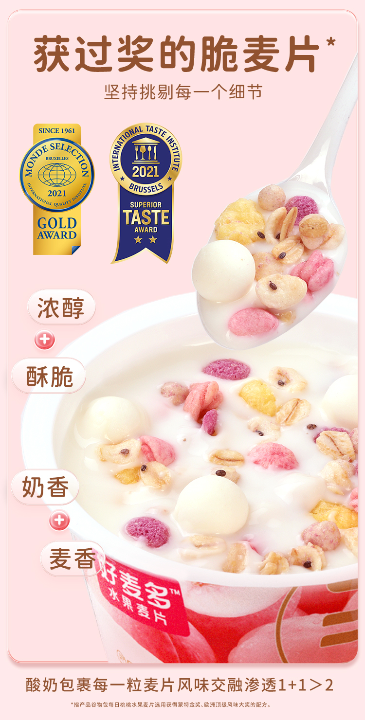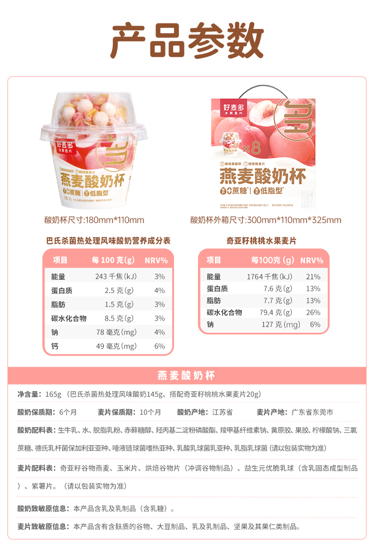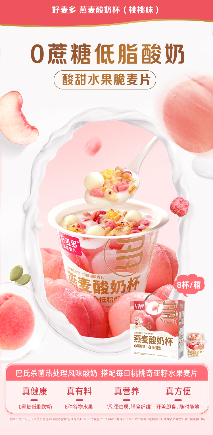 好麦多(HONlife) 燕麦搅拌酸奶碗杯 HSX129 0蔗糖桃桃酸奶杯(145g+20g)*8杯 混色(单位:盒)