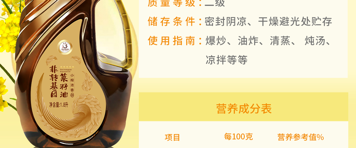 天府菜油 浓香 菜籽油 1.8L 1.8 香槟色(单位:瓶)