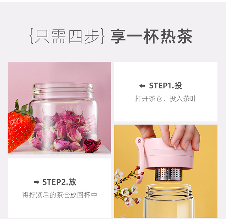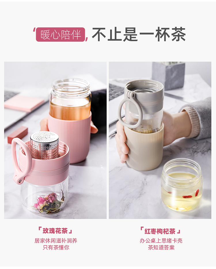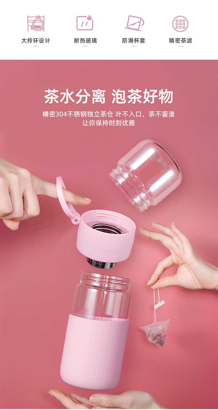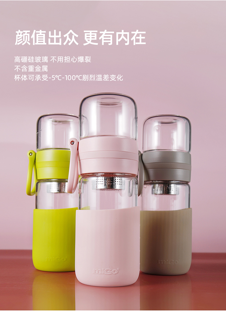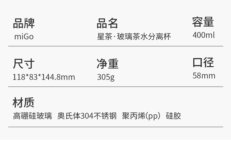 miGo星茶·玻璃茶水分离杯-G4024TW 浅墨灰