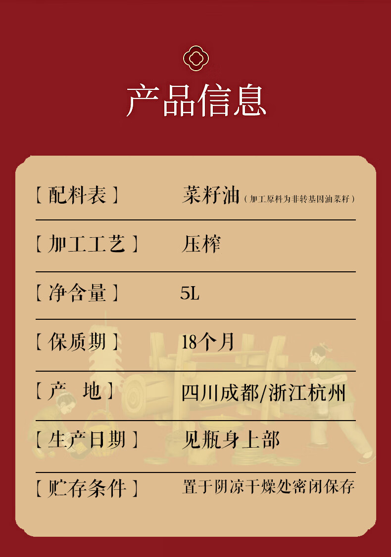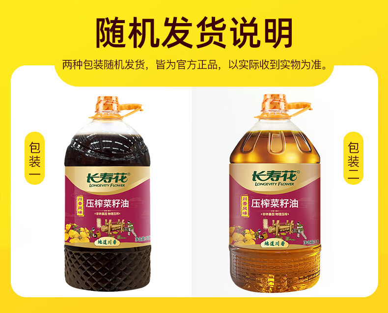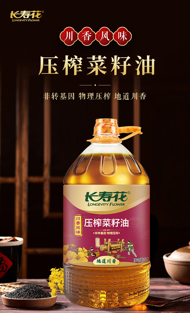 长寿花 川香风味 压榨菜籽油 5L 混色(单位:桶)