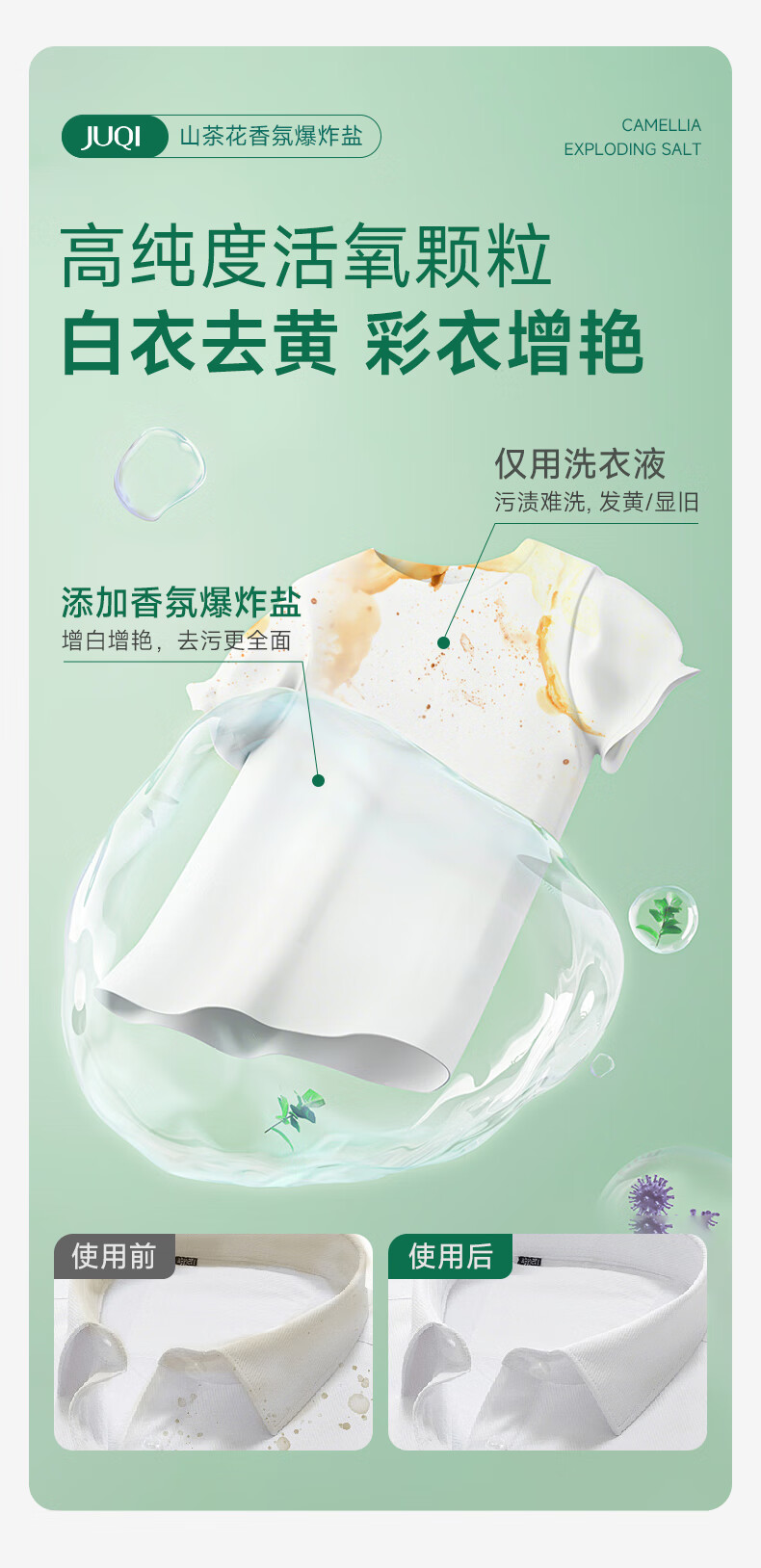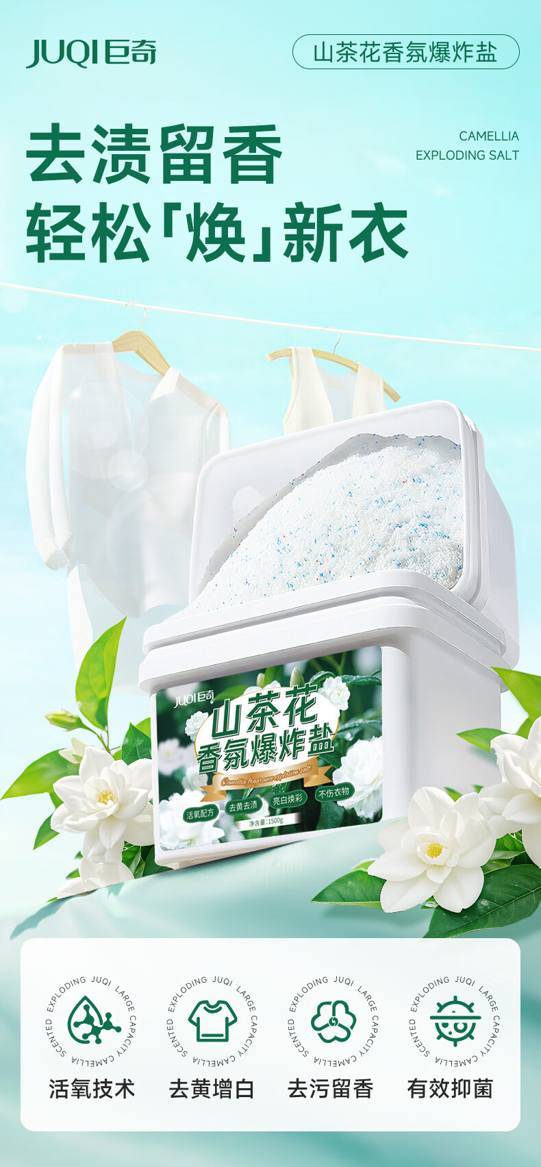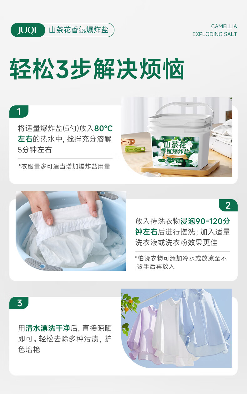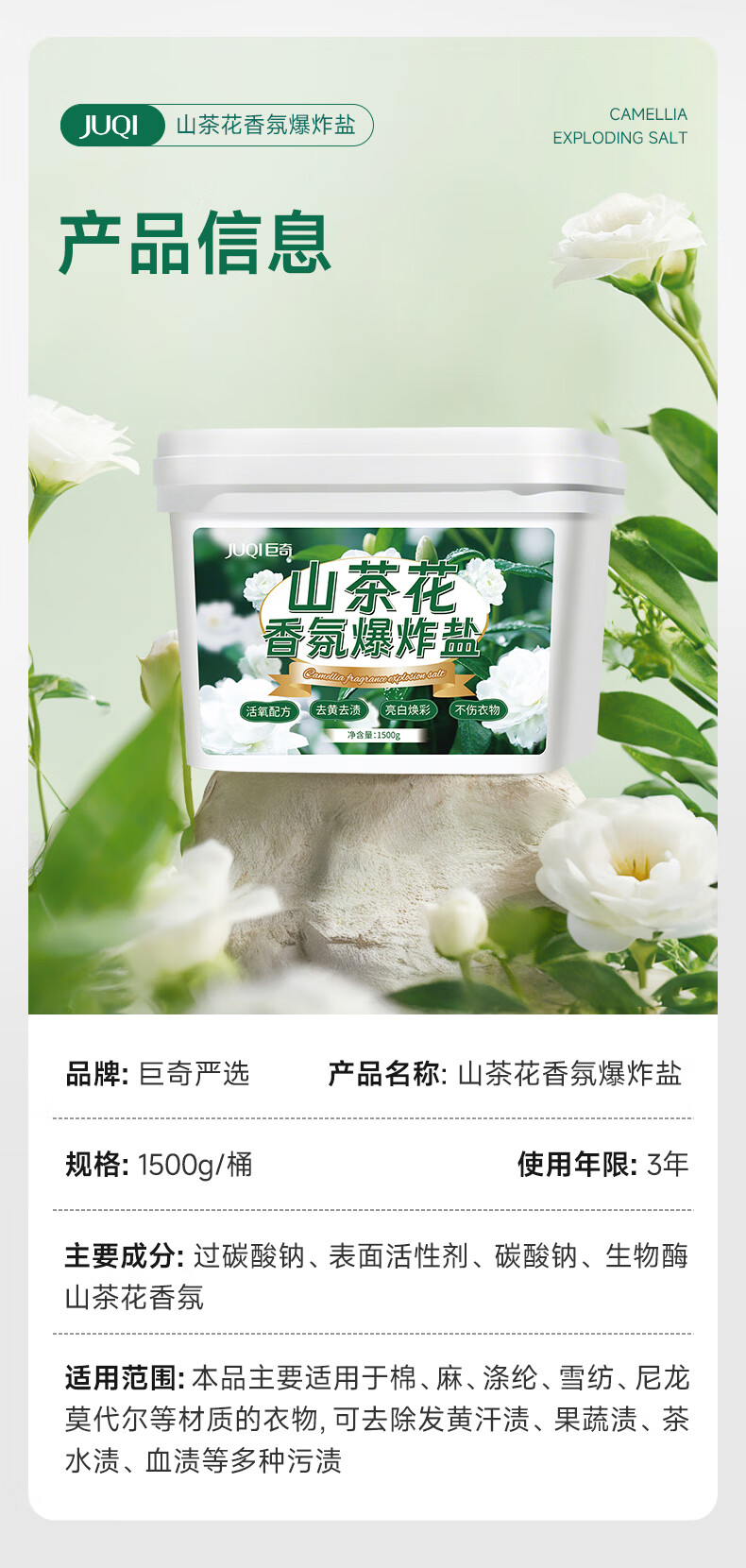 巨奇(JUQI) 山茶花爆炸盐 洗白增艳 1500g 绿色(单位:盒)