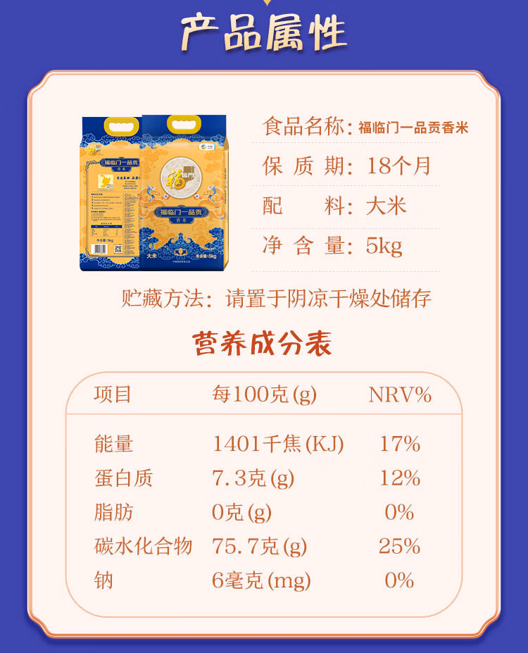 福临门 一品贡香米 5kg . 无色(单位:袋)