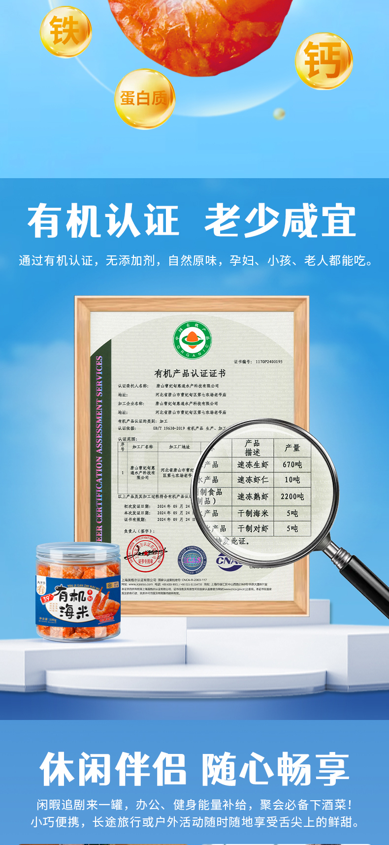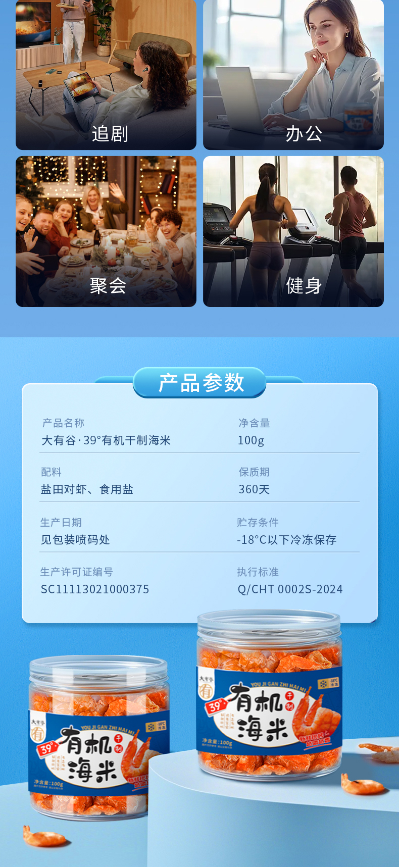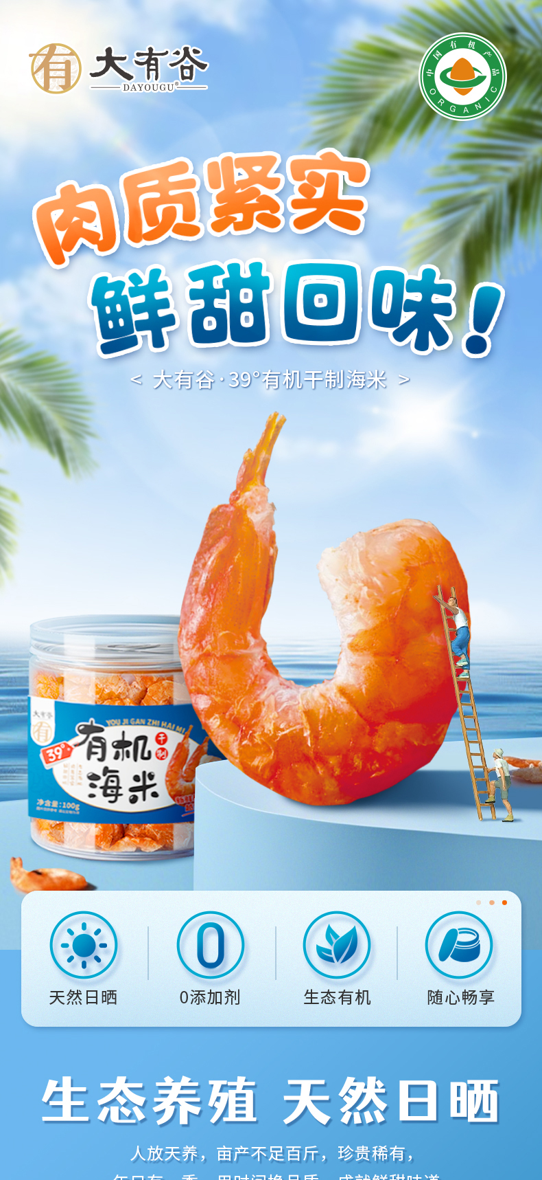 大有谷(DAYOUGU) 39°有机盐田对虾 干制有机海米 100g*2罐 蓝色(单位:组)
