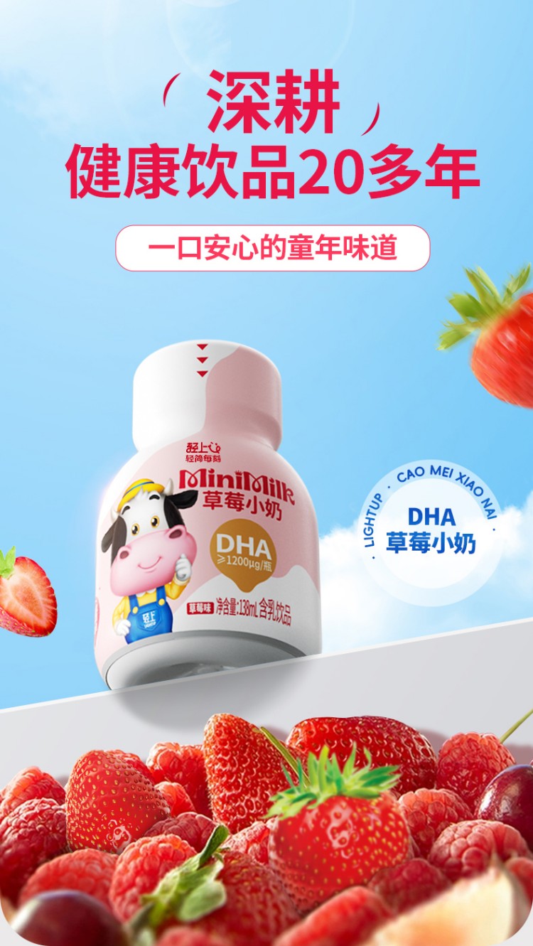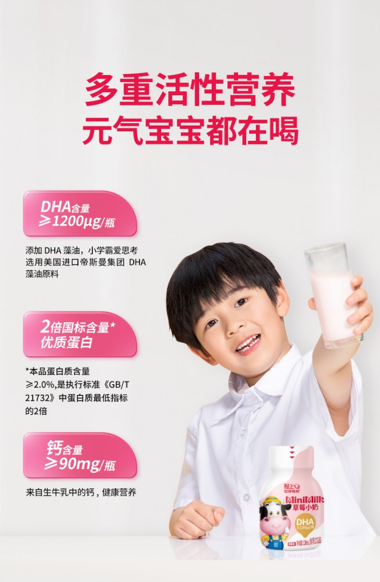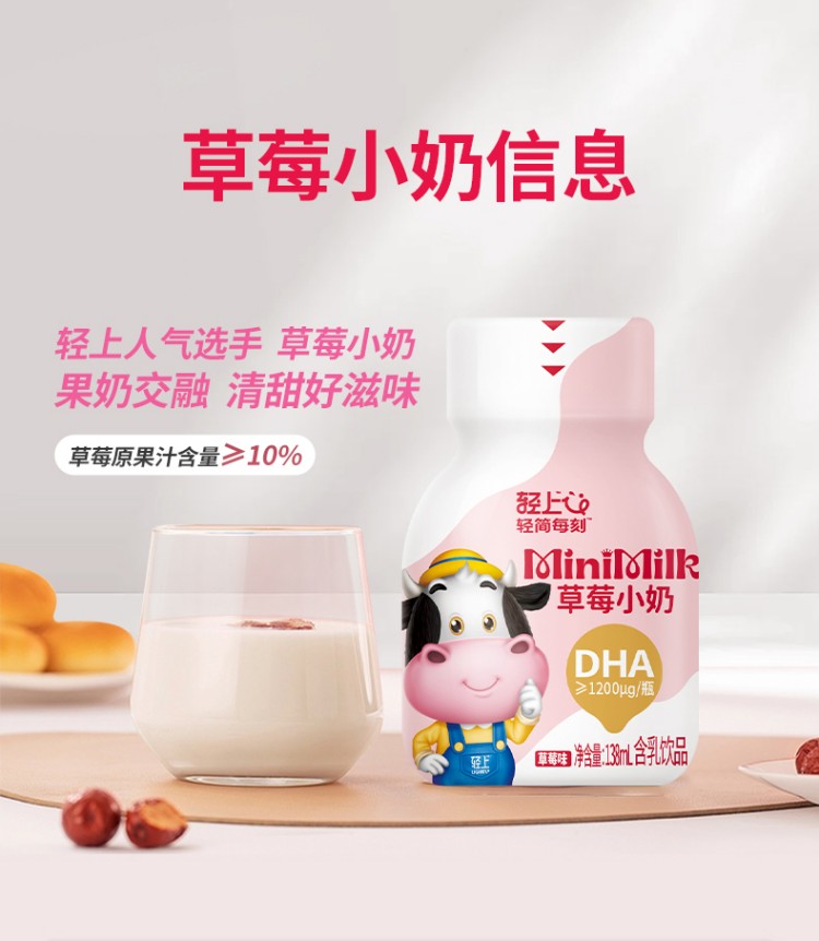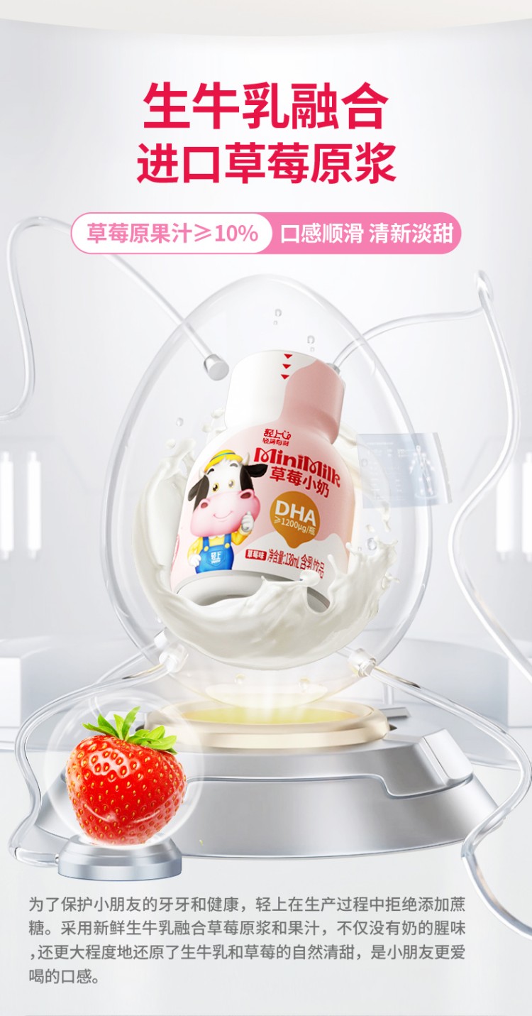 轻上(LIGHT UPPER) 儿童生牛乳草莓味 饮品 135ml*15瓶 粉色(单位:组)