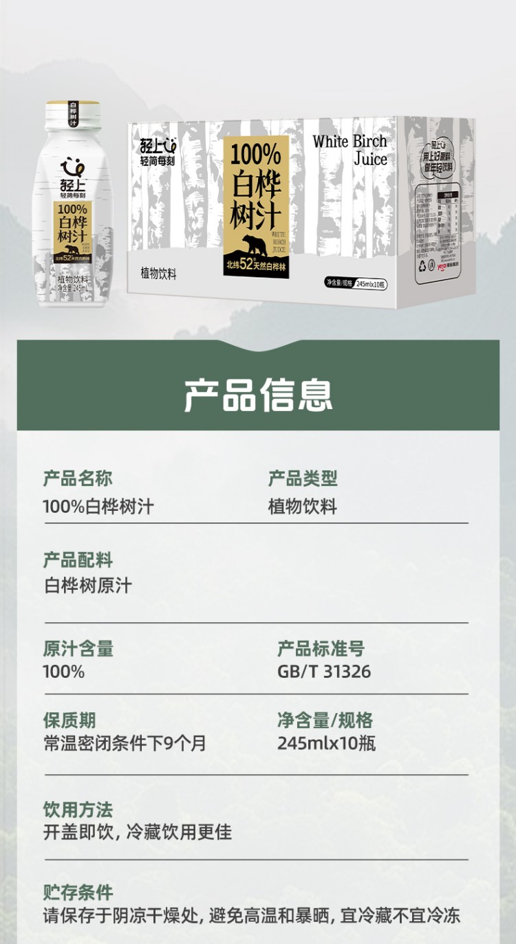 轻上(LIGHT UPPER) 白桦树汁 饮品 245ml*10瓶 本白色(单位:组)