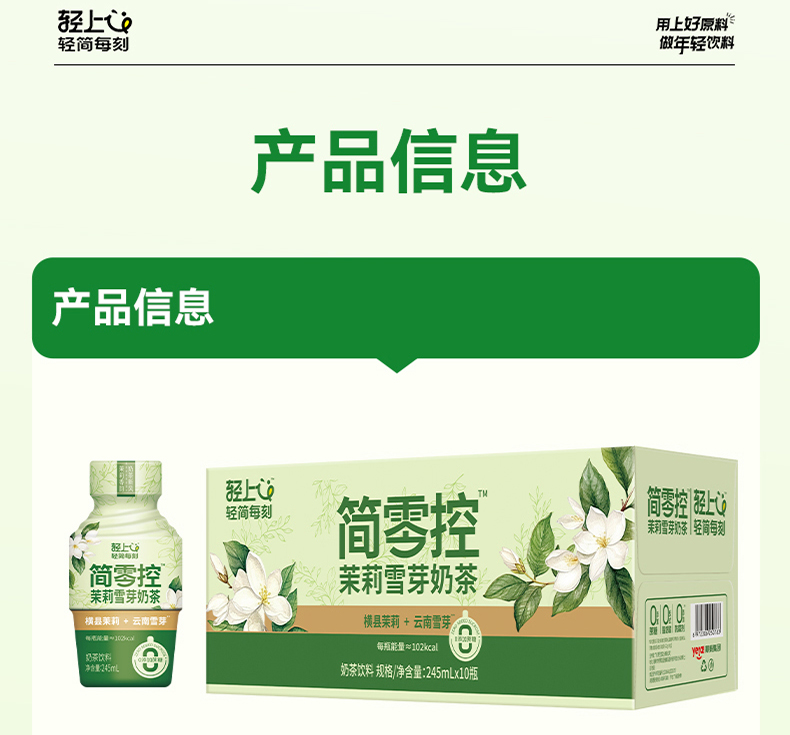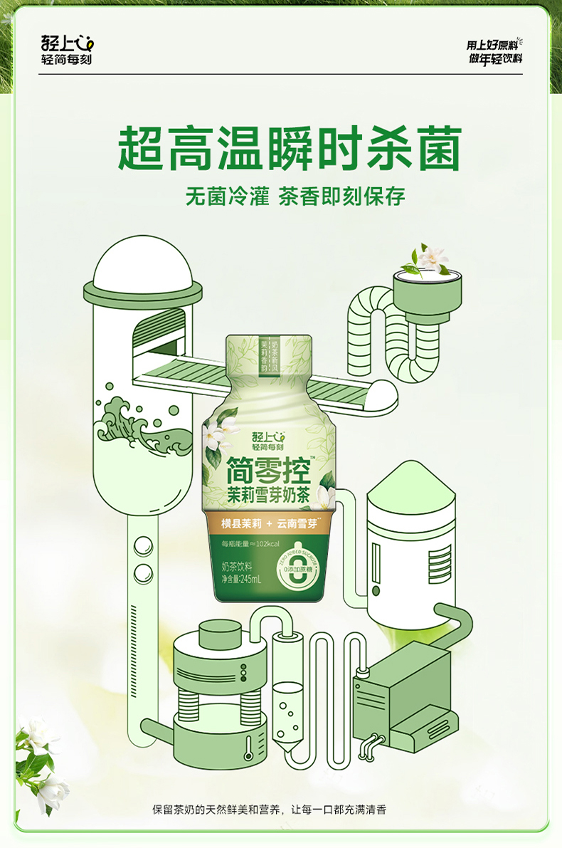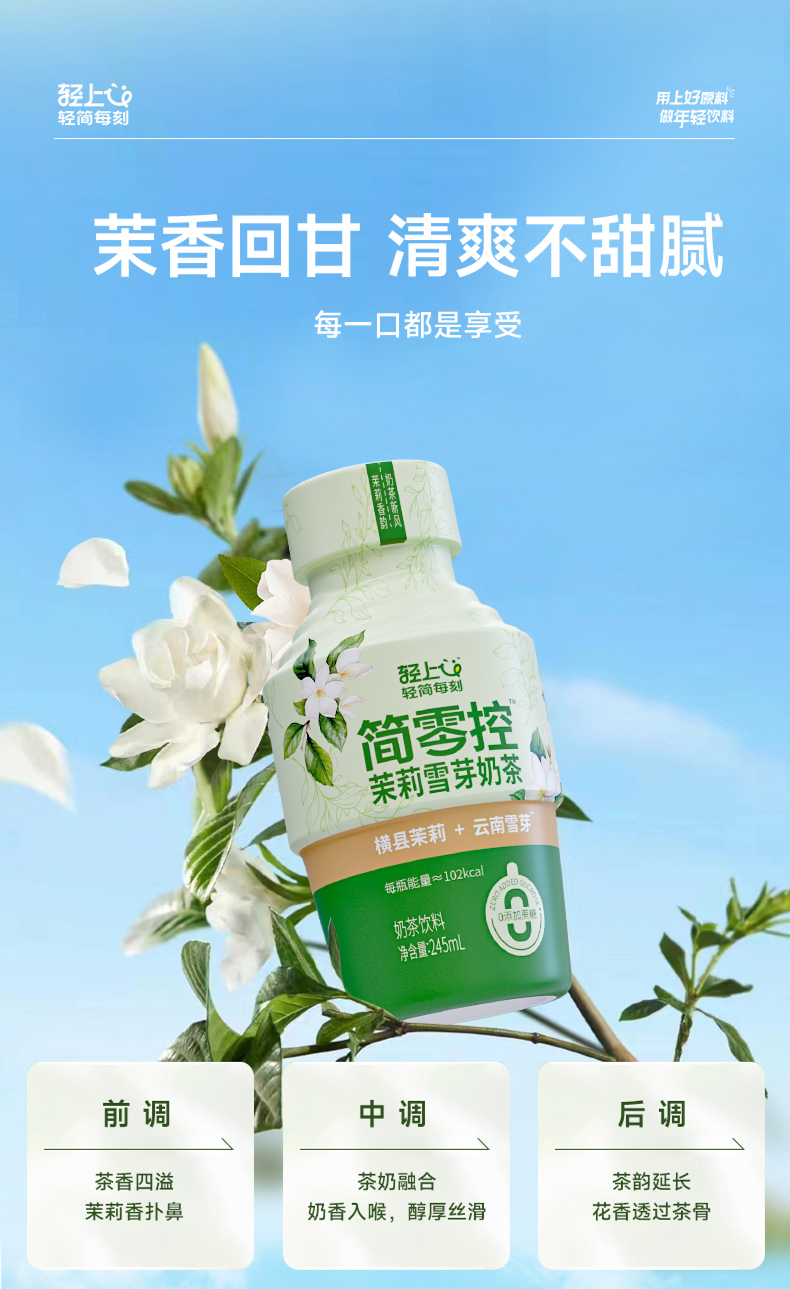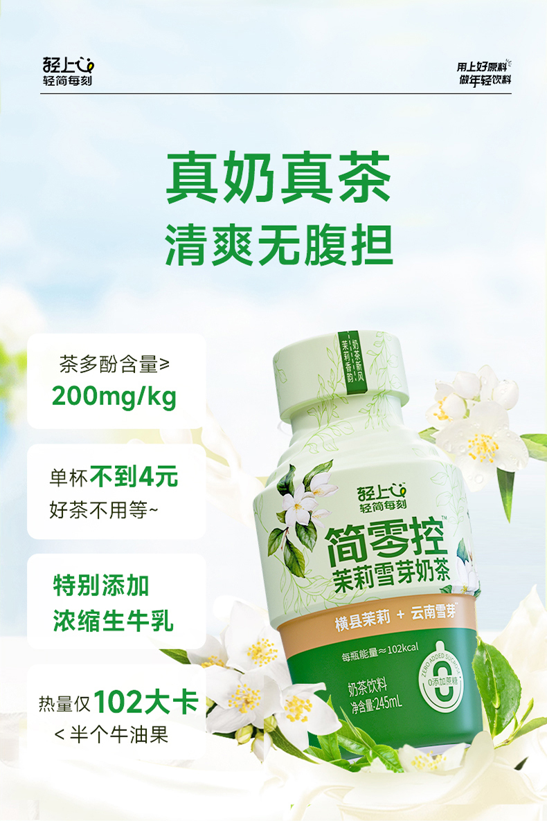 轻上(LIGHT UPPER) 简零控茉莉雪芽奶茶 饮品 245ml*10瓶 绿色(单位:组)