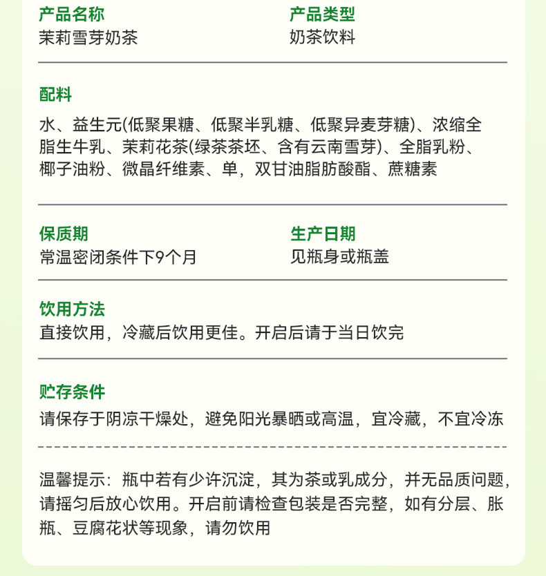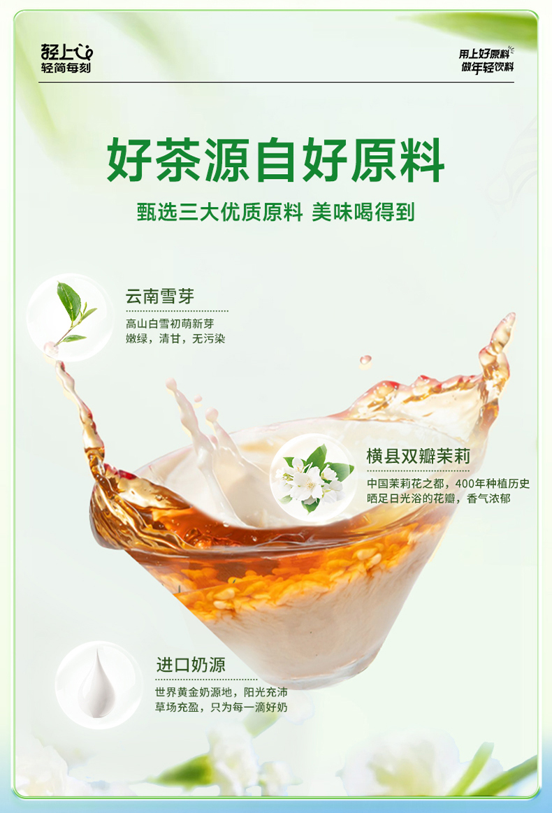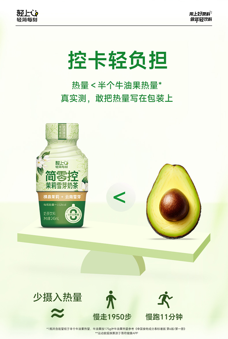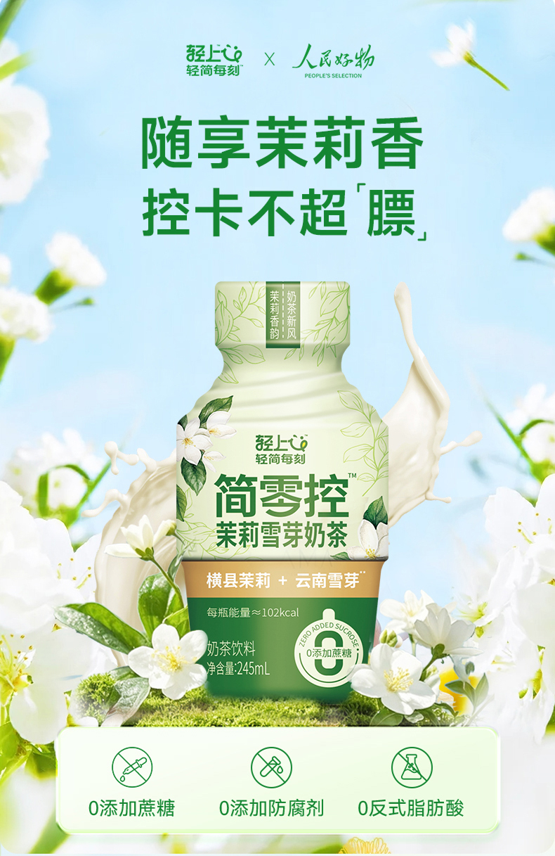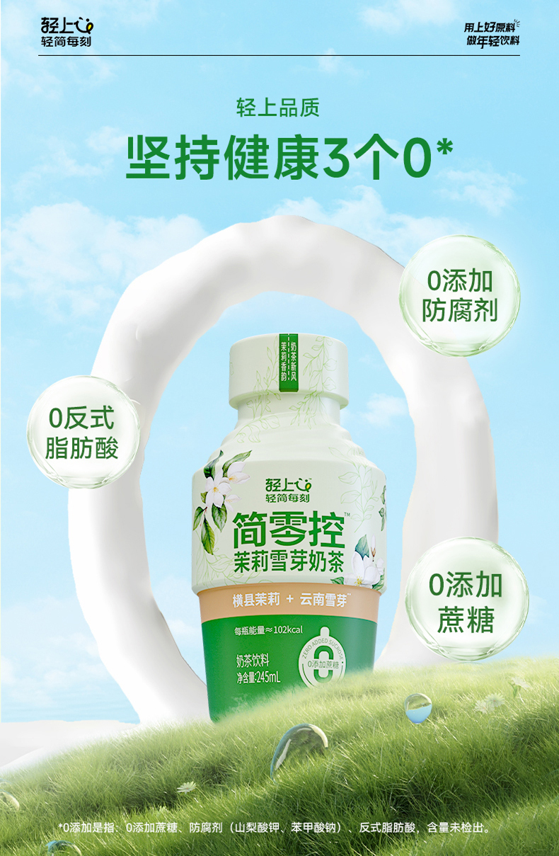 轻上(LIGHT UPPER) 简零控茉莉雪芽奶茶 饮品 245ml*10瓶 绿色(单位:组)