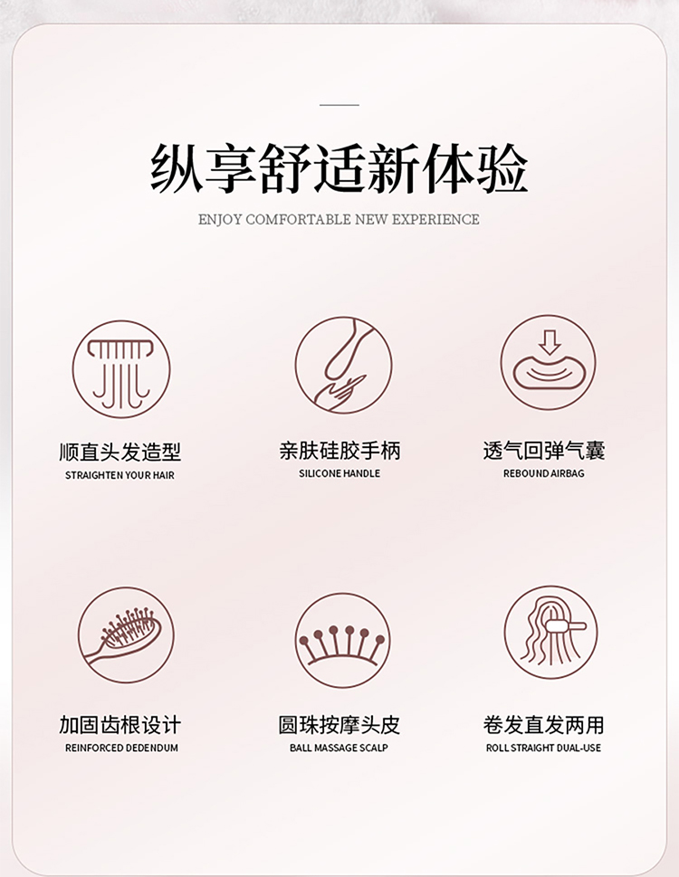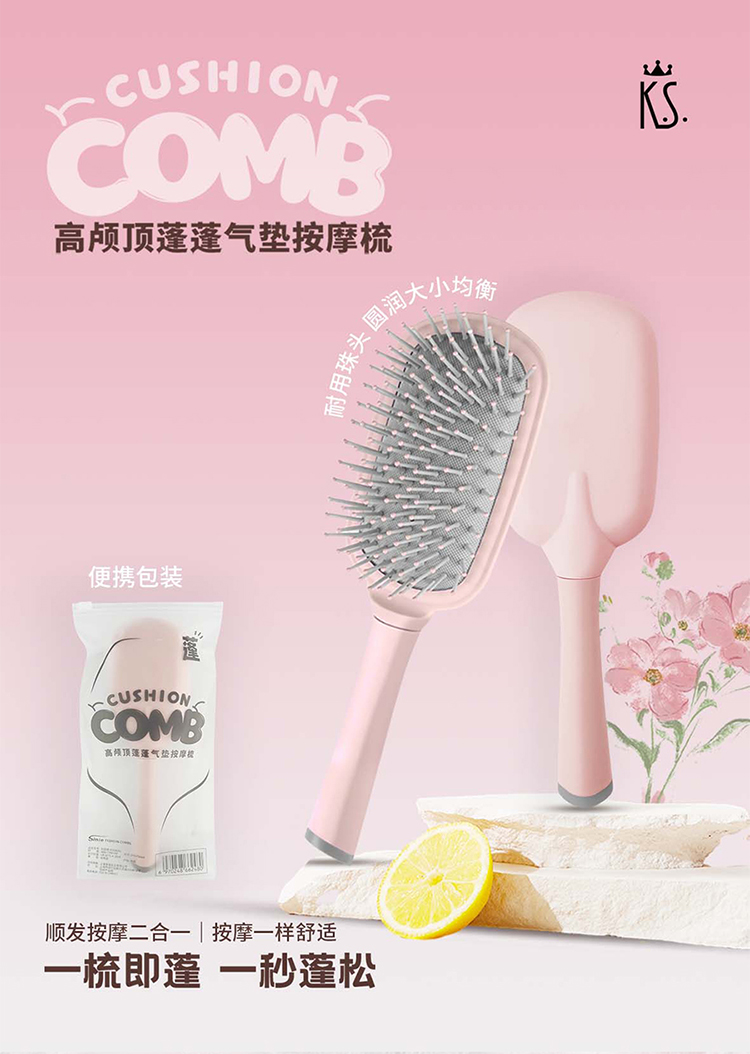 K.S. 高颅顶蓬蓬气垫按摩梳 KS-911 8*24.5CM 粉色(单位:只)