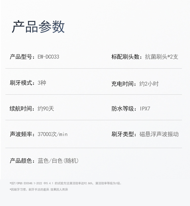 松下(Panasonic) 电动牙刷声波震动深度清洁 美白护龈 EW-DC033 防水等级:IPX7 白色(单位:台)