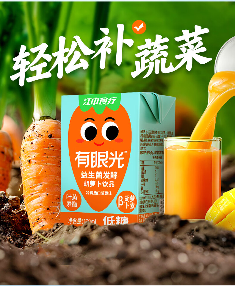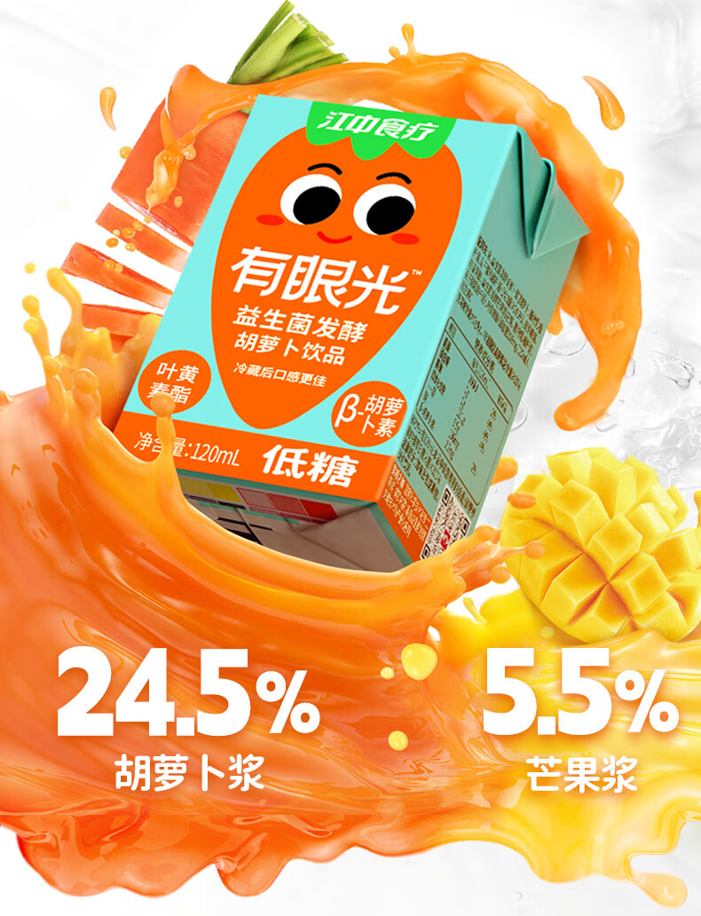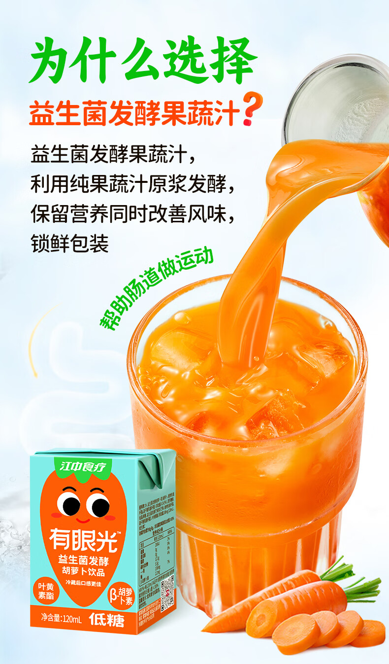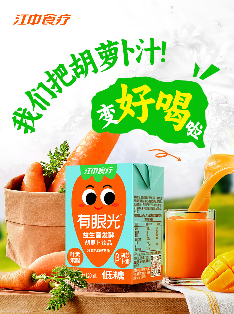 江中食疗 果汁 有眼光益生菌发酵胡萝卜汁 120ml*20盒 橙色(单位:盒)