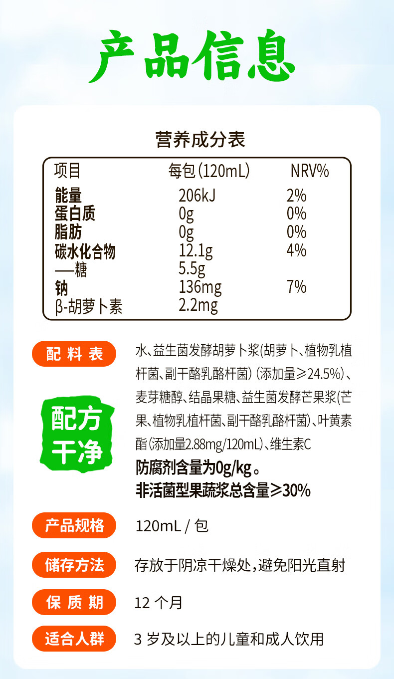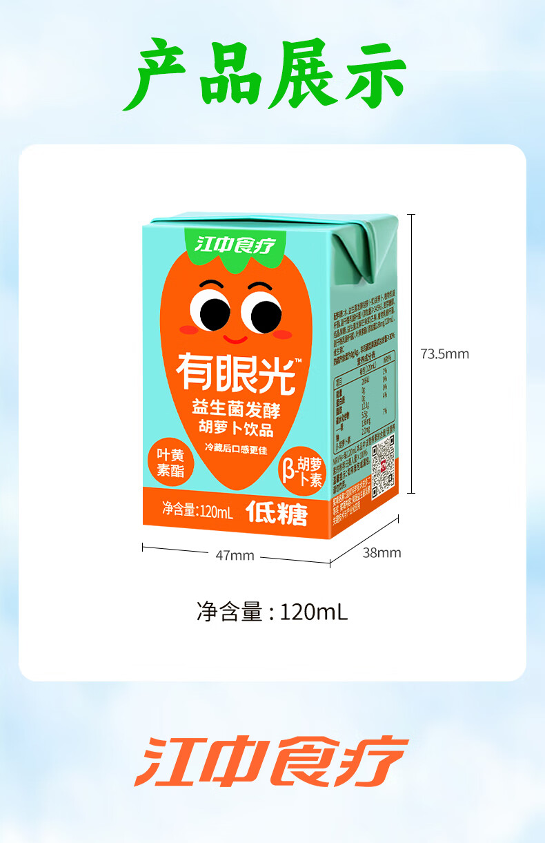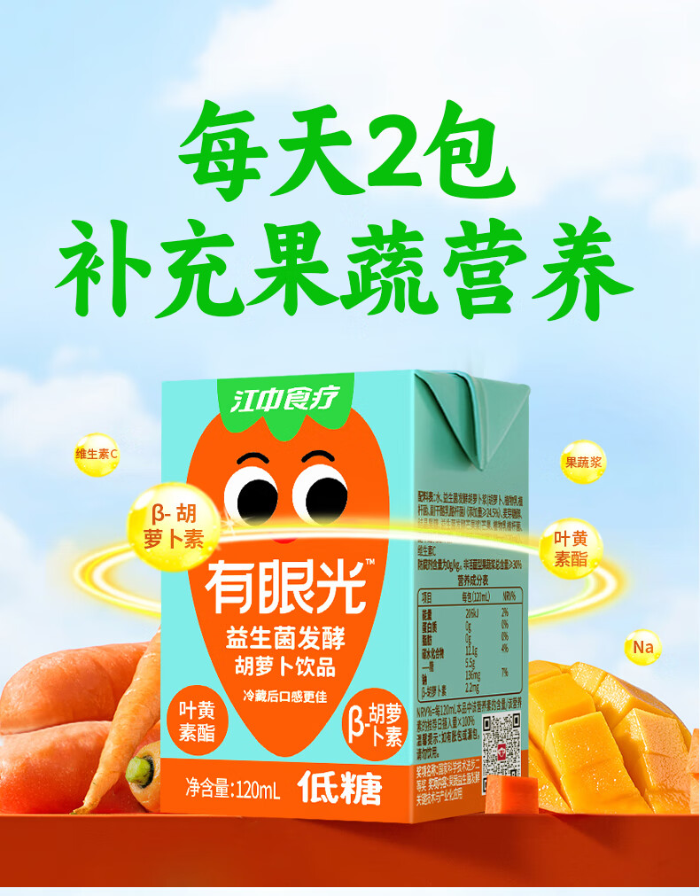 江中食疗 果汁 有眼光益生菌发酵胡萝卜汁 120ml*20盒 橙色(单位:盒)