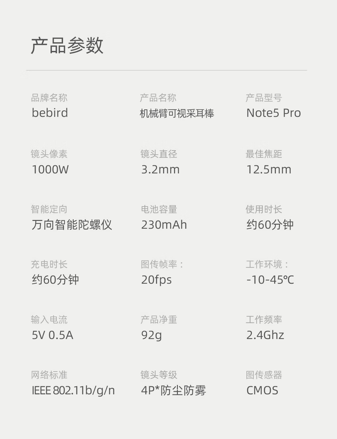 bebird 蜂鸟智能可视洁耳仪 Note5 Pro 电池容量:230mAh 蓝色(单位:台)