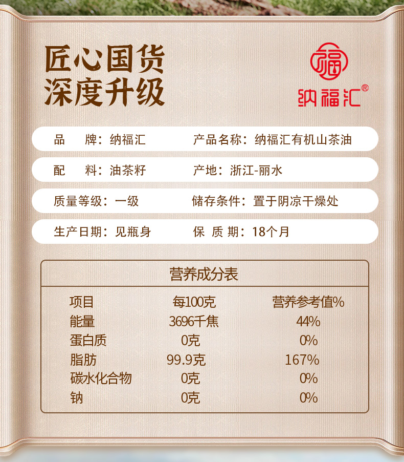 纳福汇 福禄有机山茶油单瓶 G-09 1000ml 天蓝色(单位:瓶)
