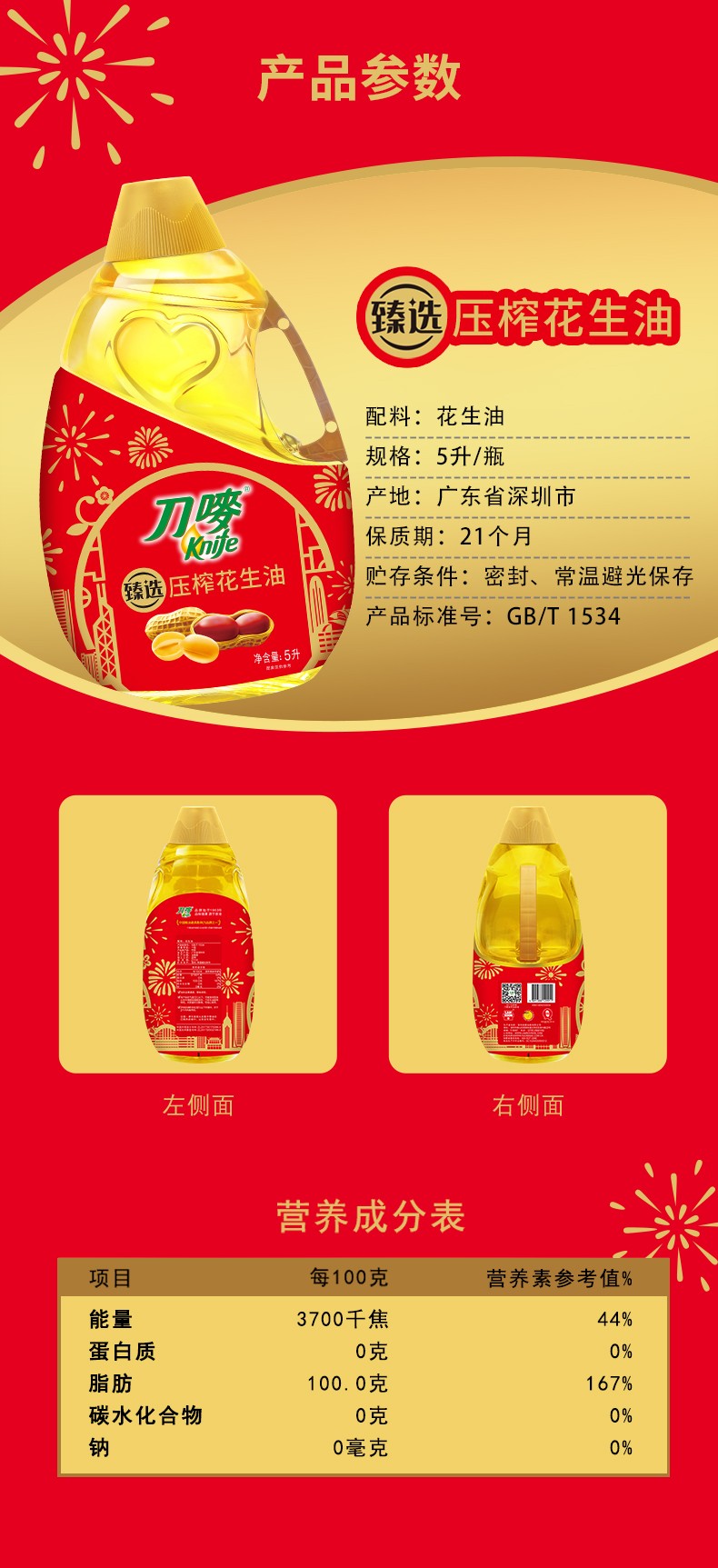 刀唛(Knife) 臻选 压榨花生油 5L 红色(单位:桶)