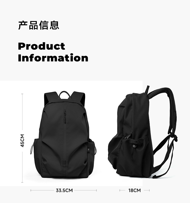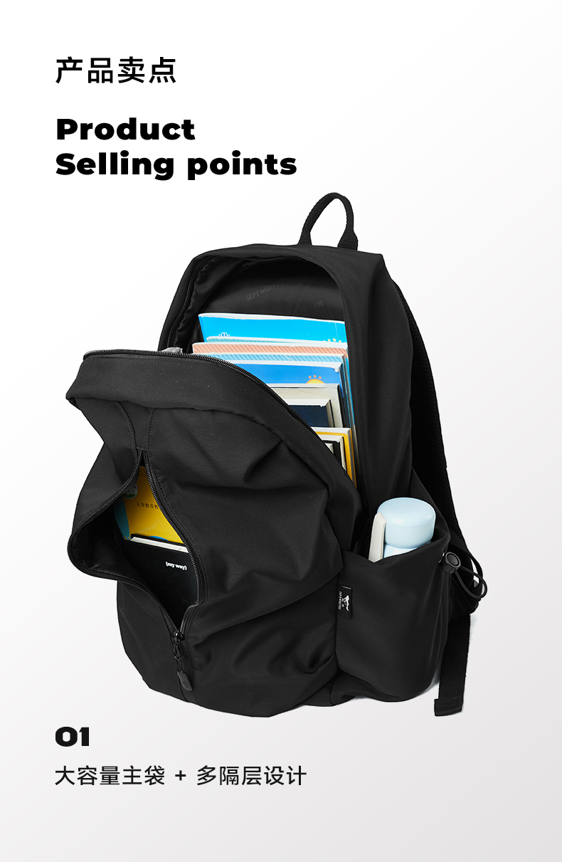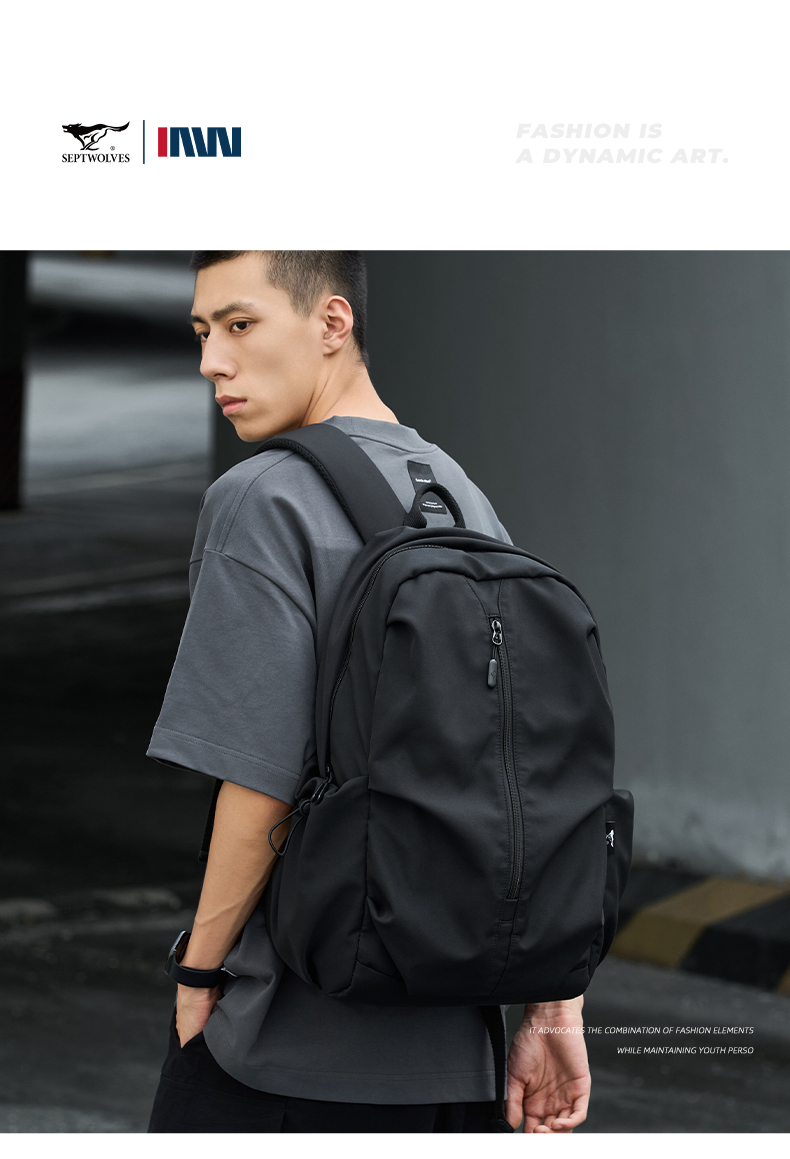 七匹狼(SEPTWOLVES) 潮牌双肩包男士休闲旅行包大容量背包 CD031399-3 33.5x18x45cm 黑色(单位:件)