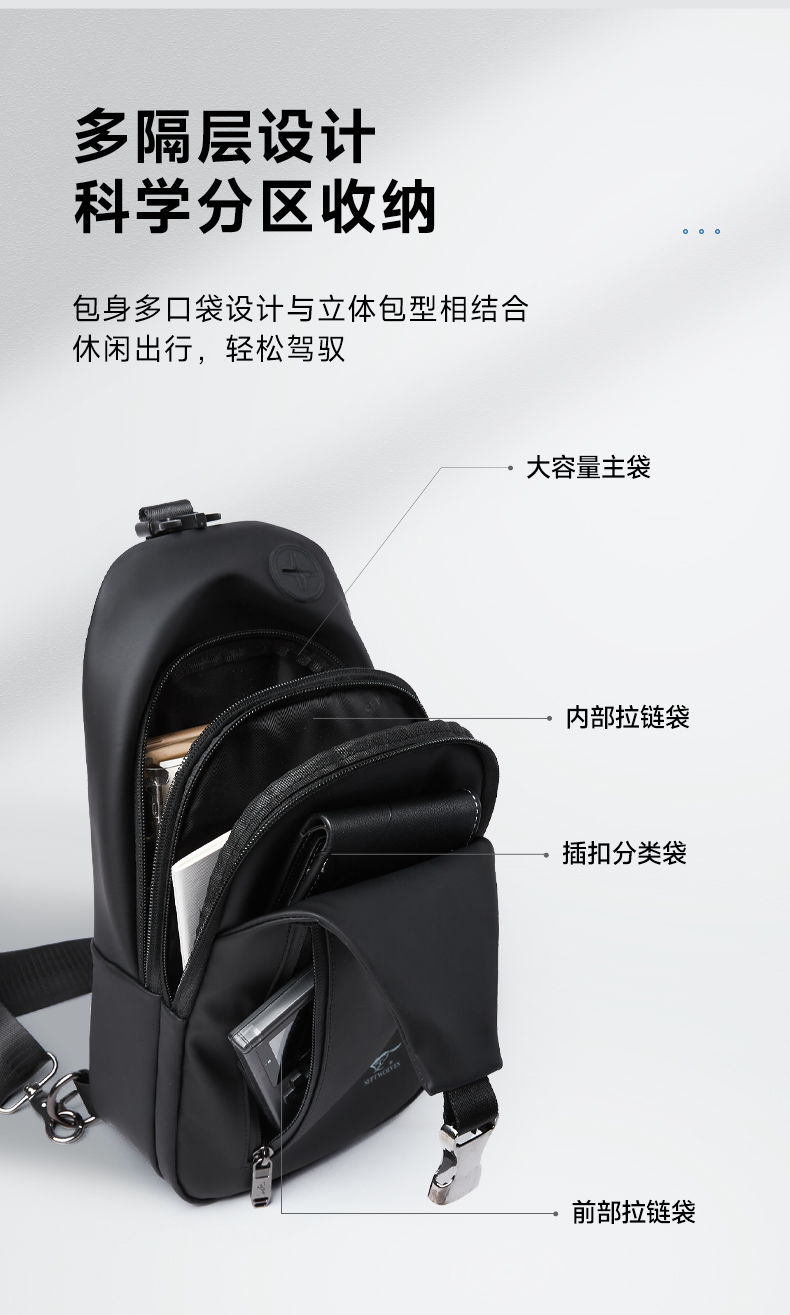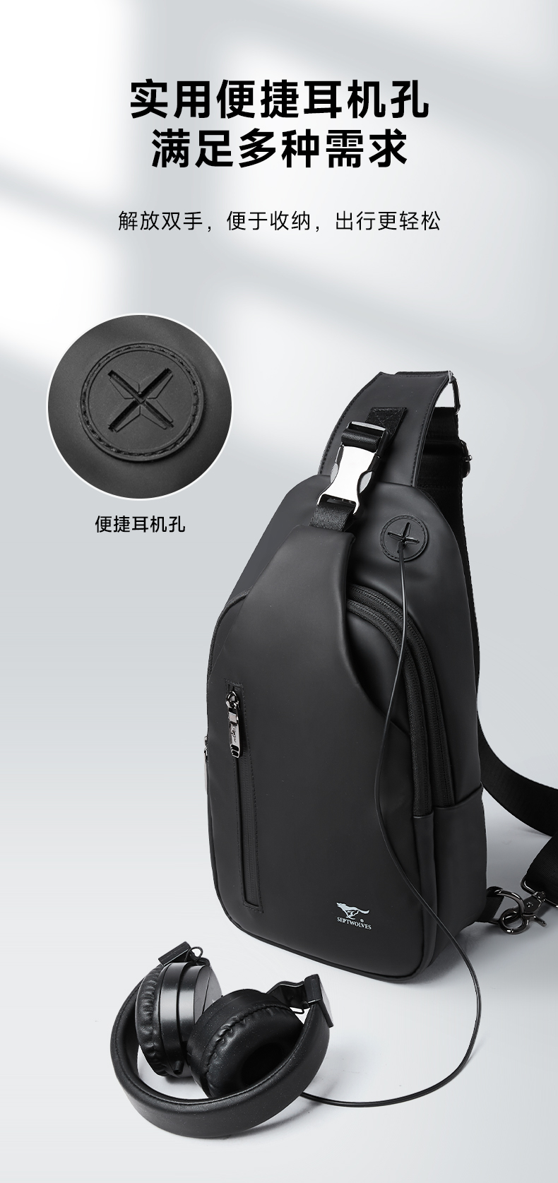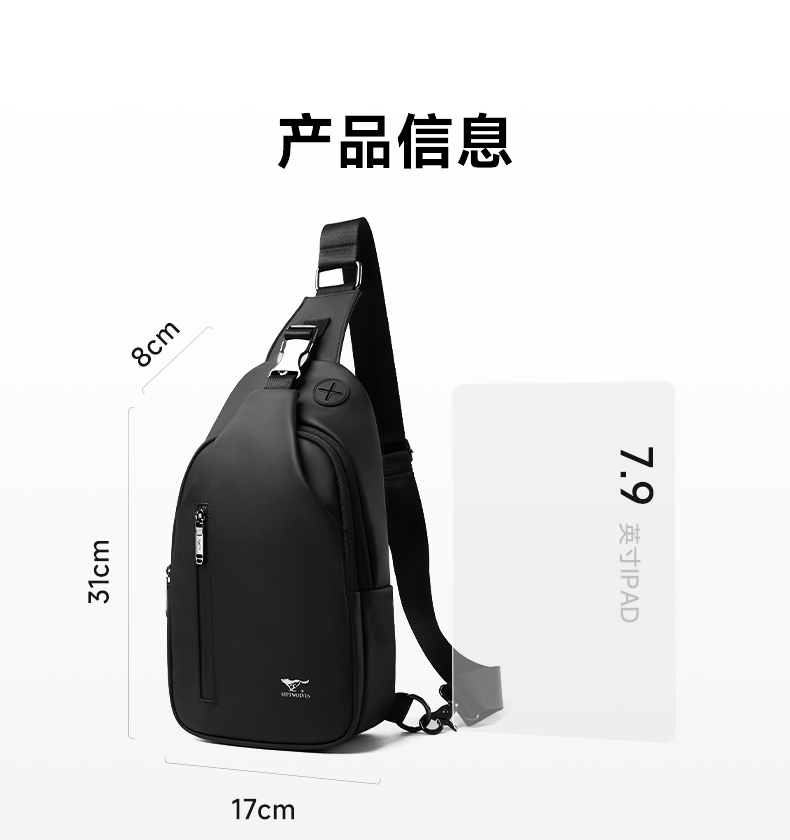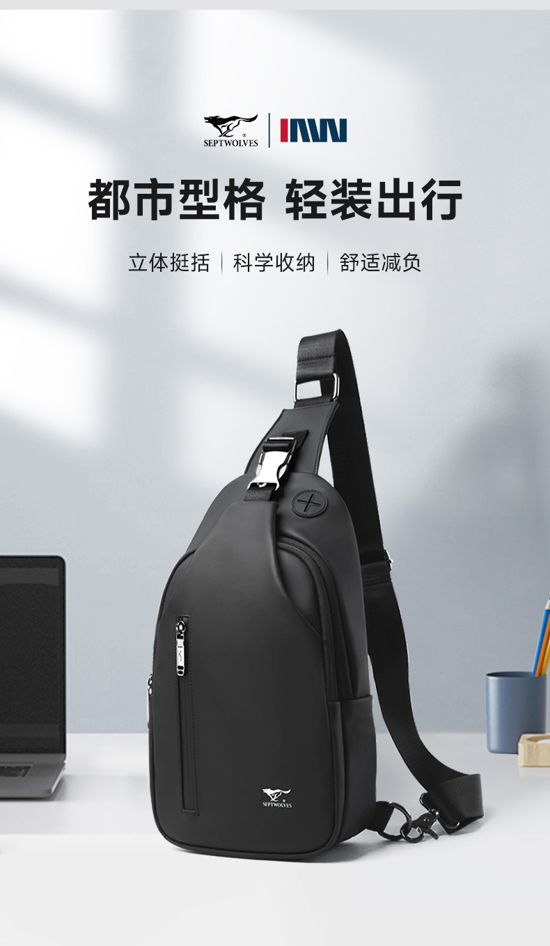 七匹狼(SEPTWOLVES) 休闲胸包男士斜挎包百搭单肩包运动包 CD131248-1 17*8*31CM 黑色(单位:件)