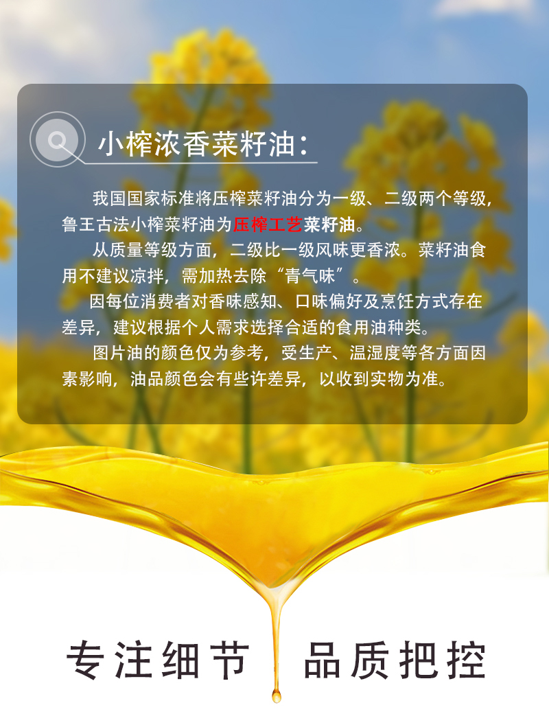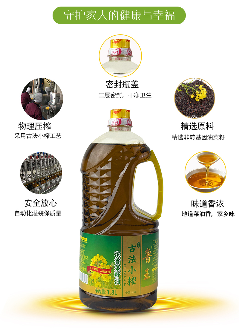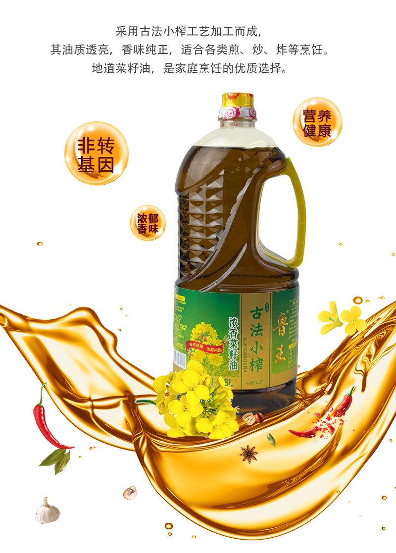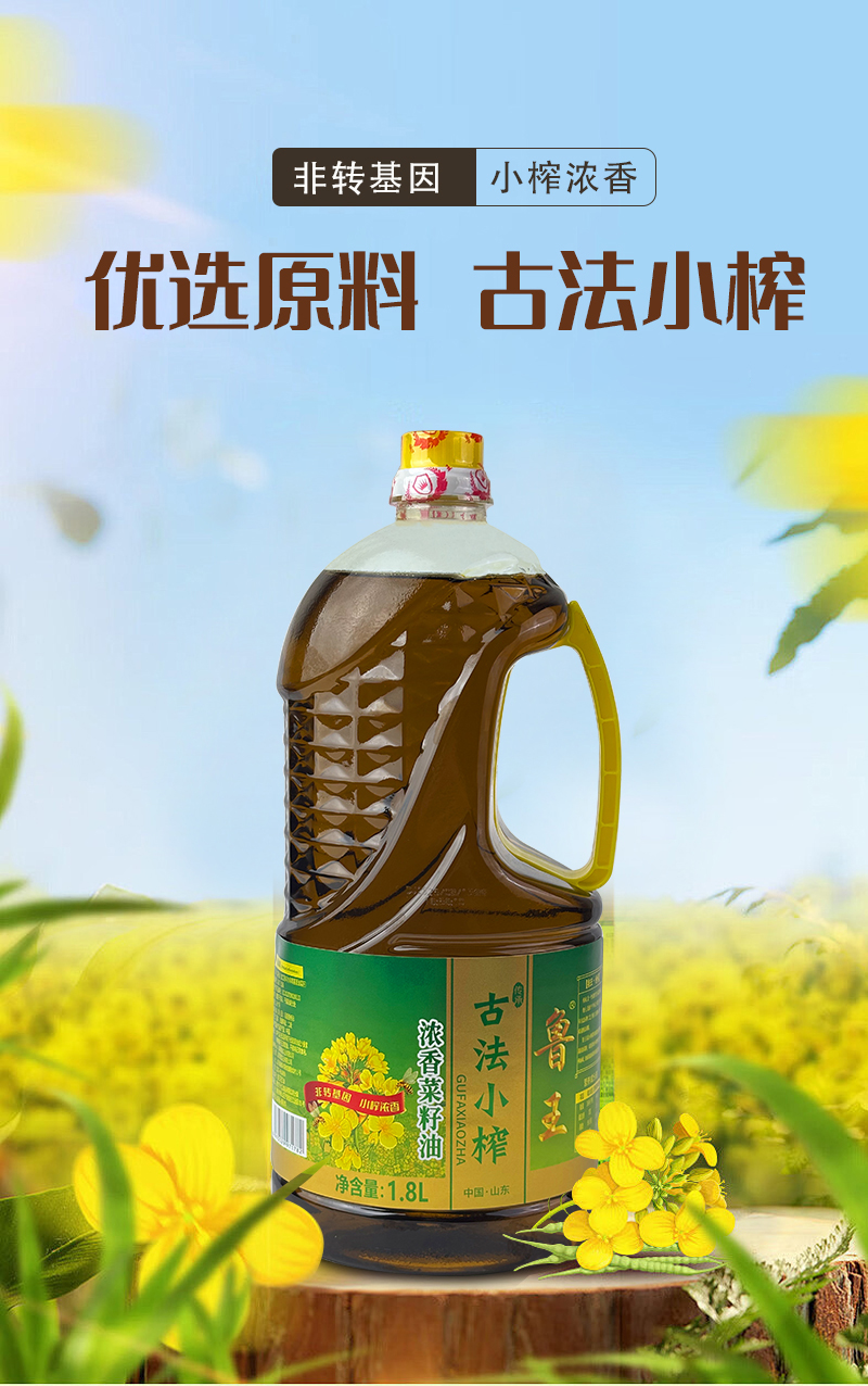 鲁王 古法小榨浓香菜籽油 油香四溢 1.8L 棕色(单位:桶)