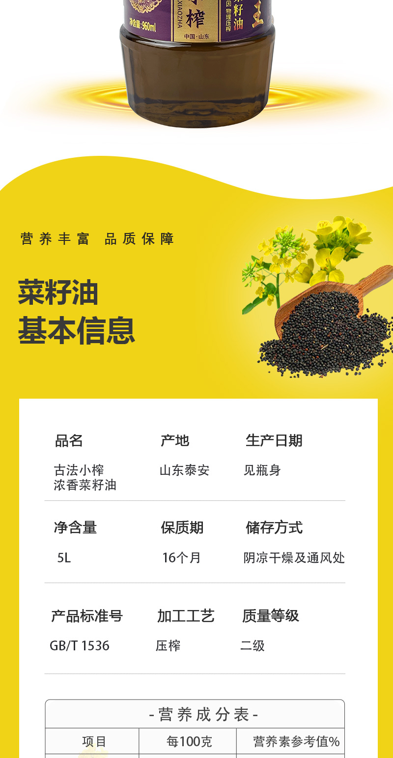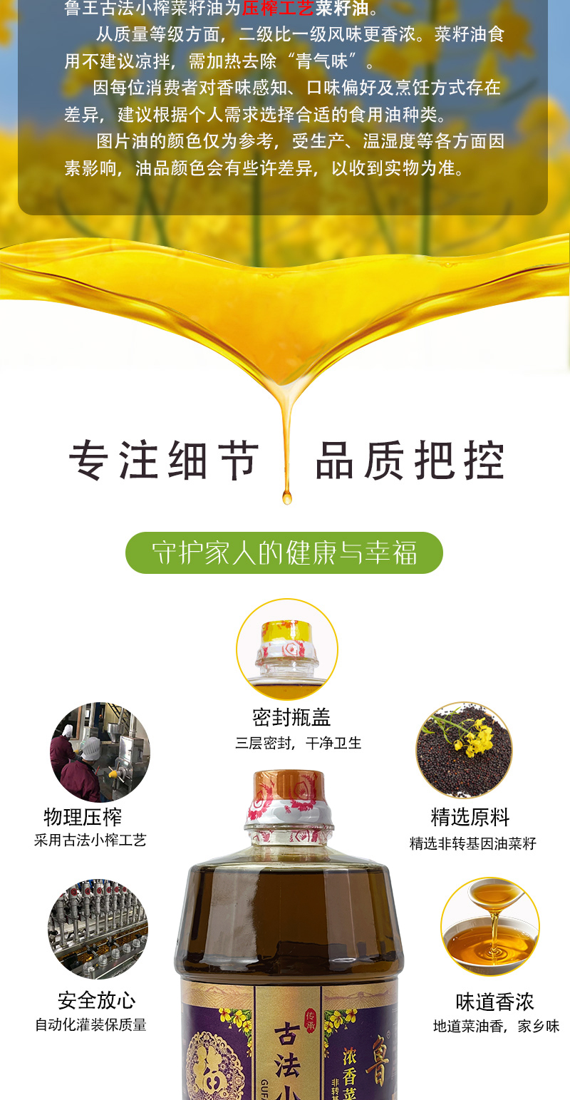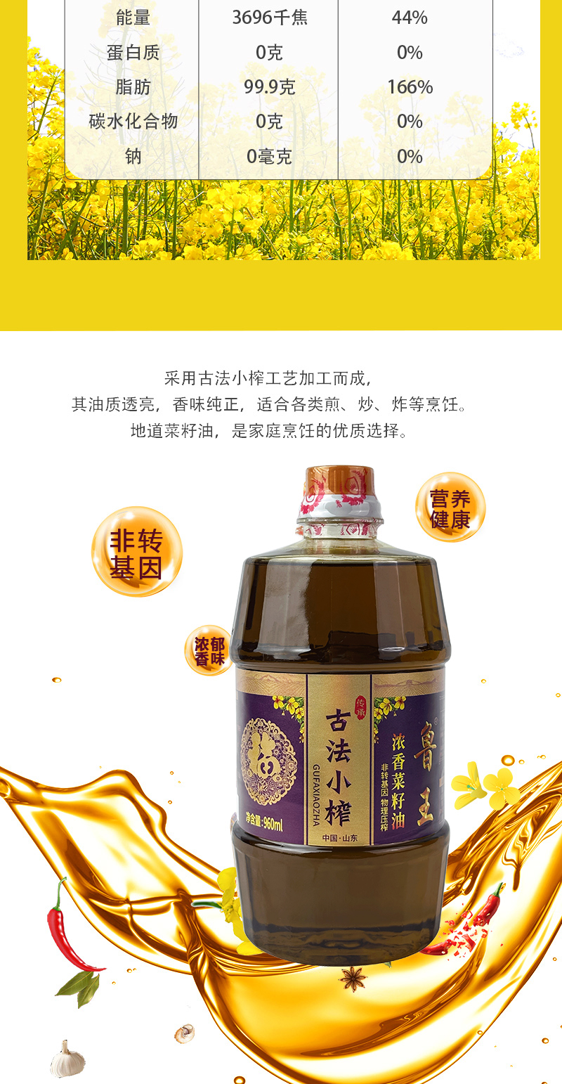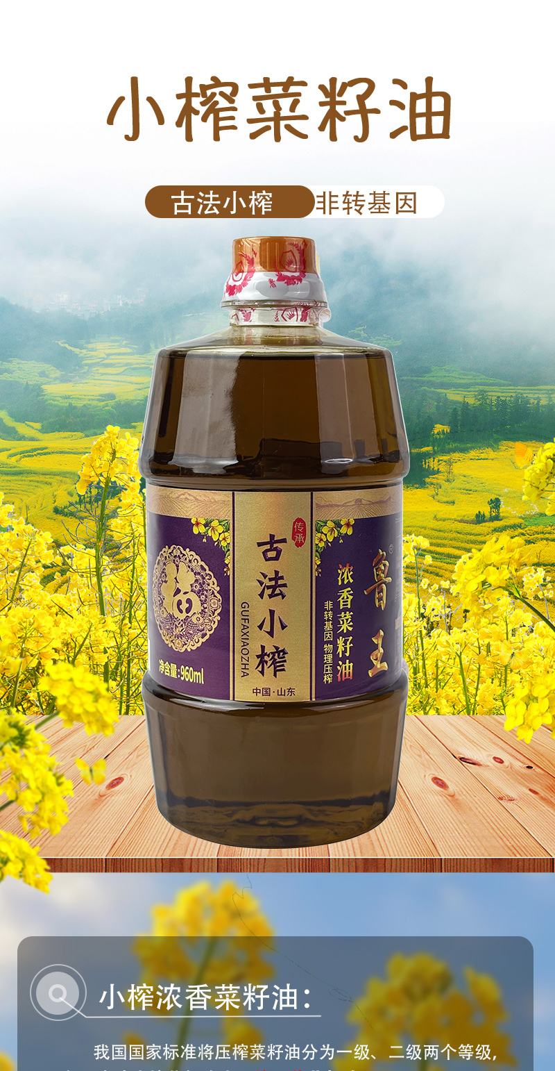 鲁王 古法小榨油香四溢 浓香菜籽油 960ml*2瓶 混色(单位:组)