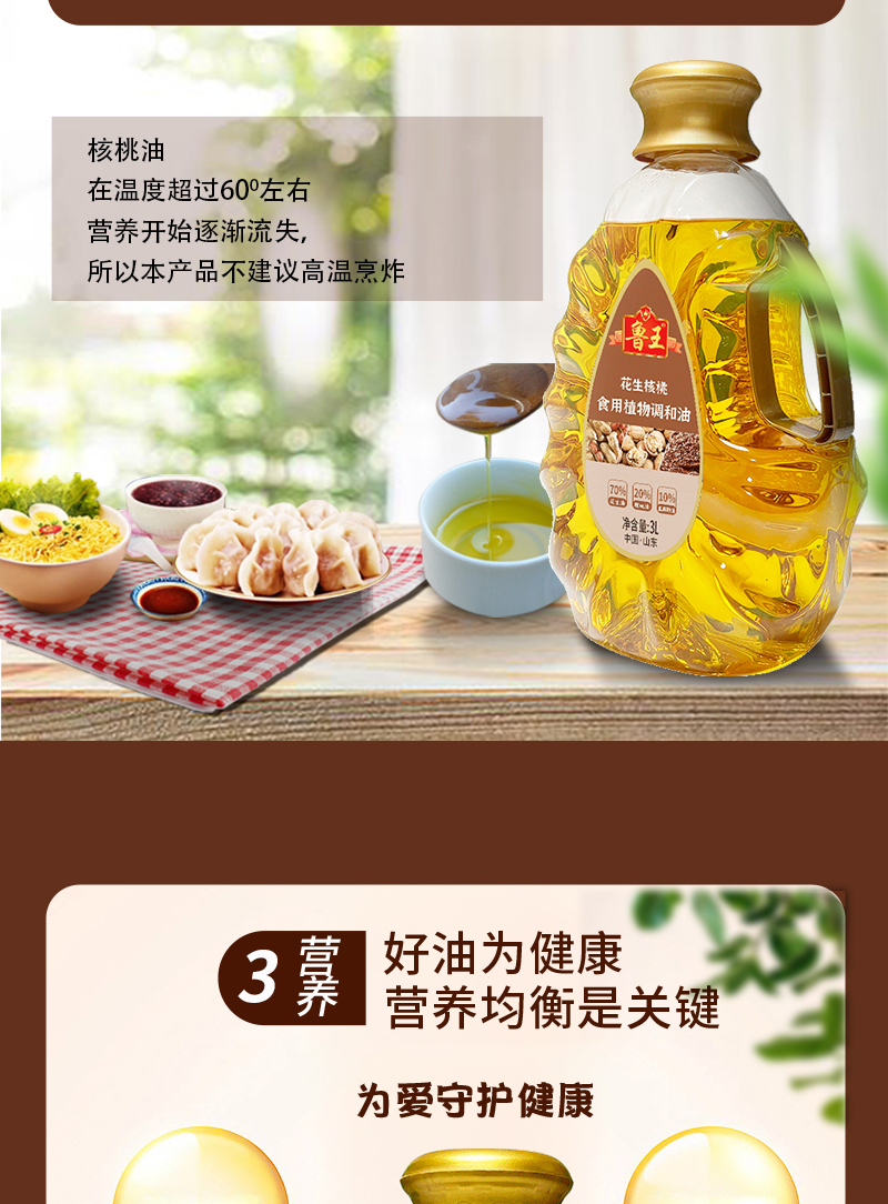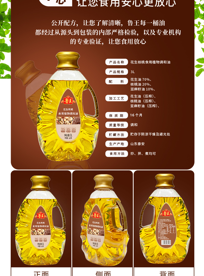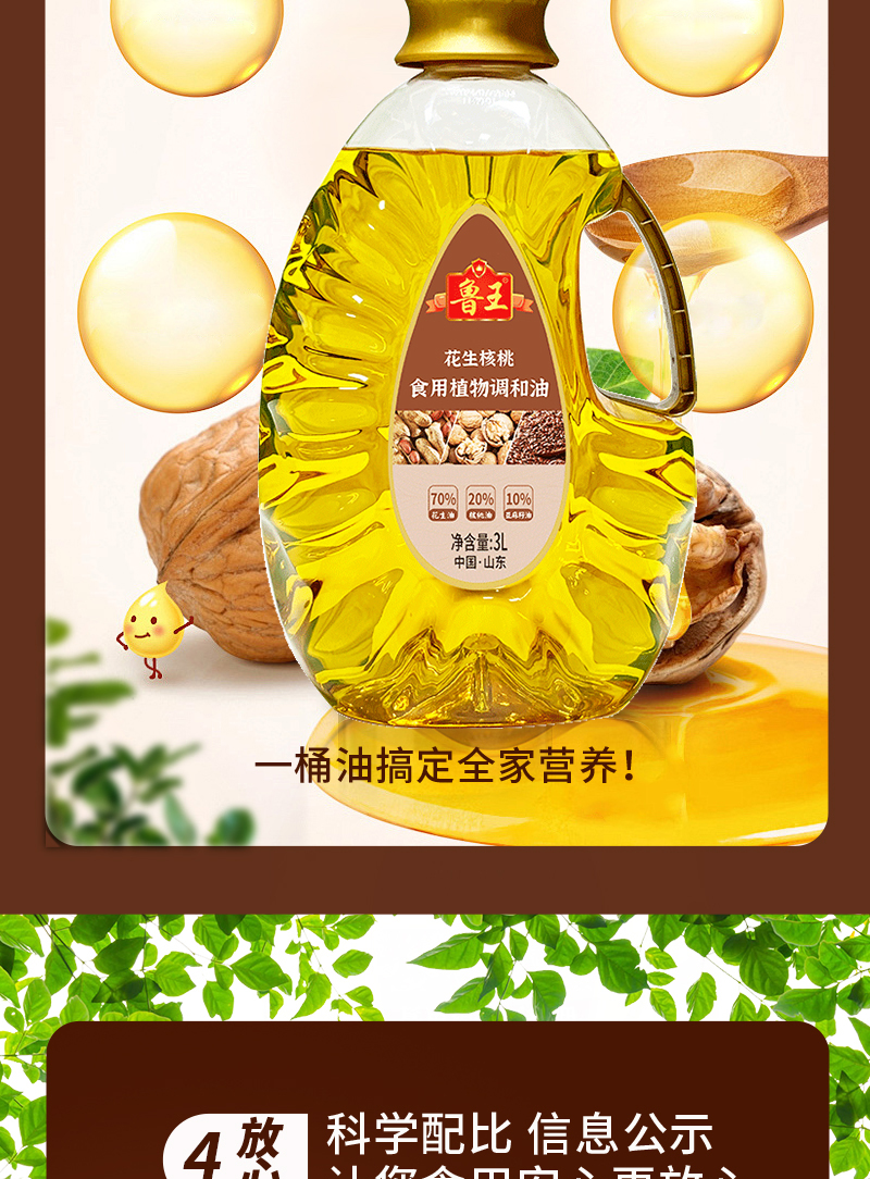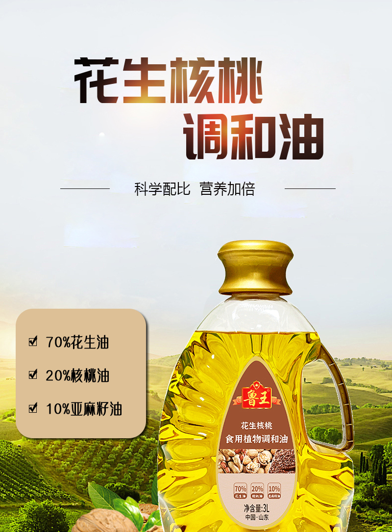 鲁王 花生核桃食用油 植物调和油 3L 混色(单位:桶)