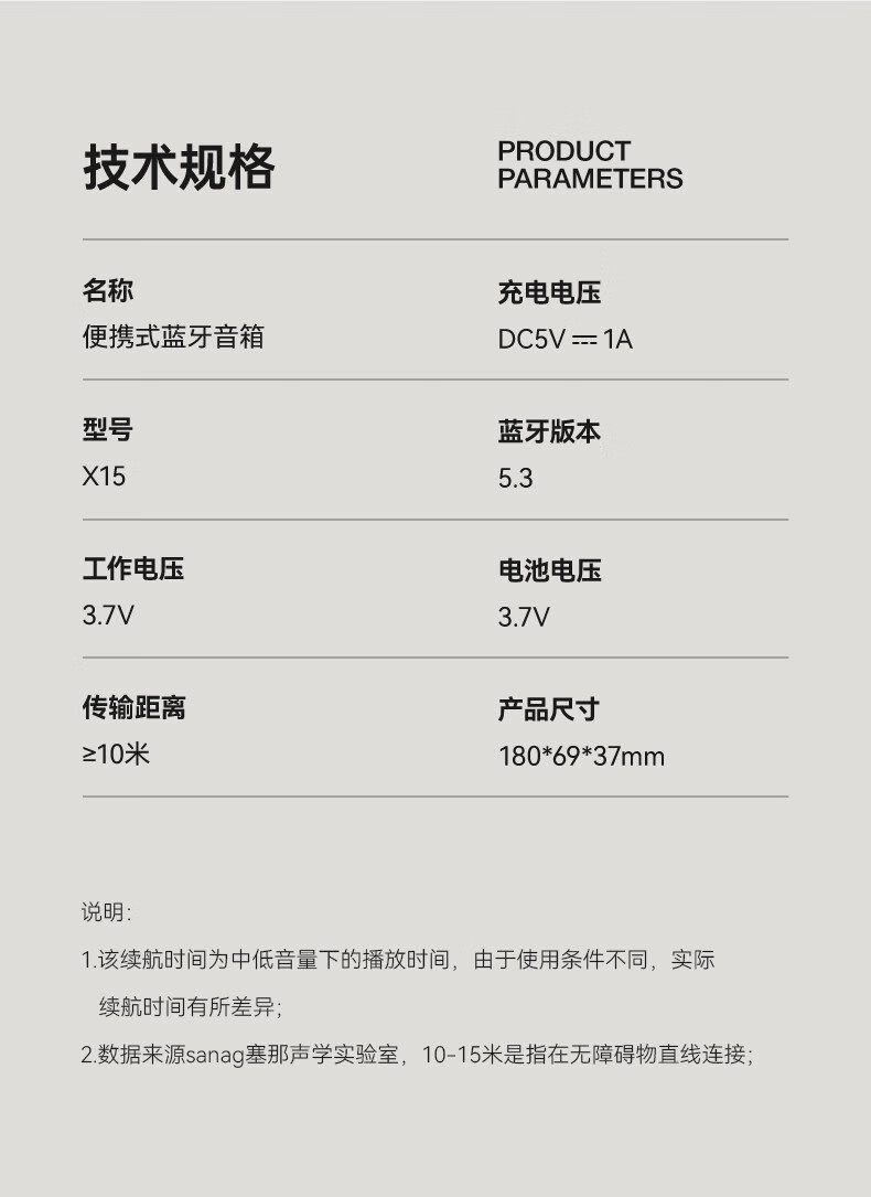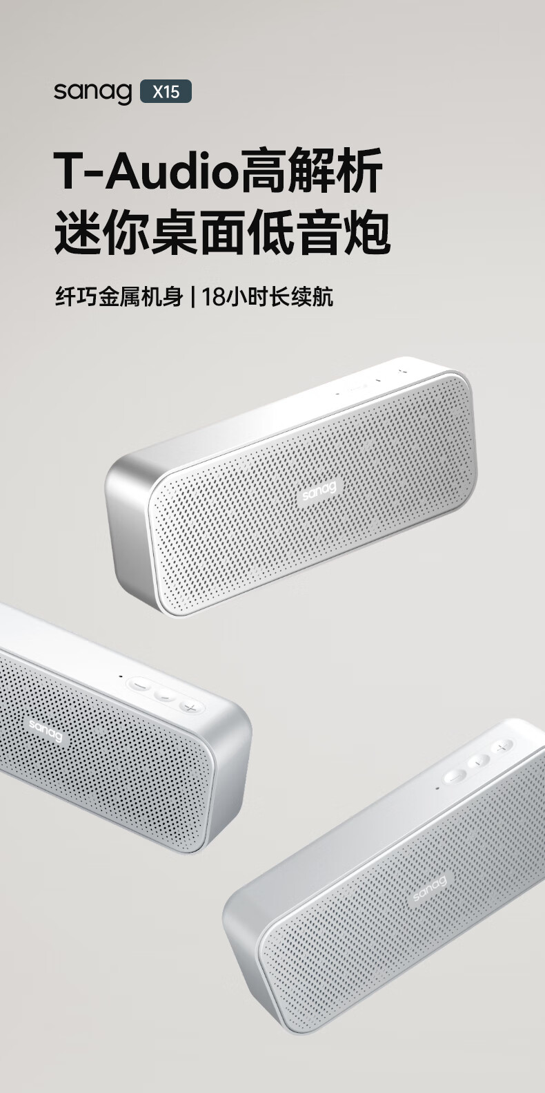 SANAG 塞那便携蓝牙音箱 X15 180*69*37mm 苍雾银(单位:个)