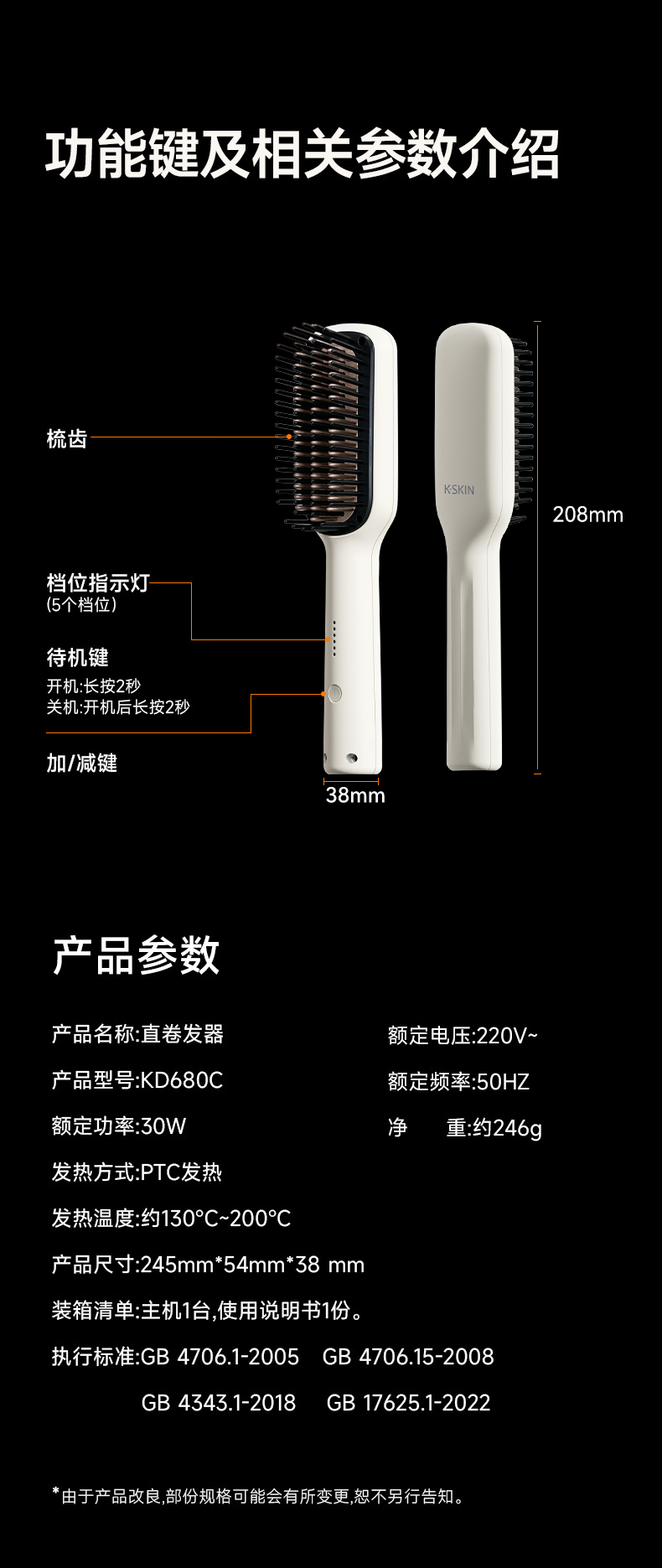 金稻 迷你直发梳 KD680C 33W 本白色(单位:台)