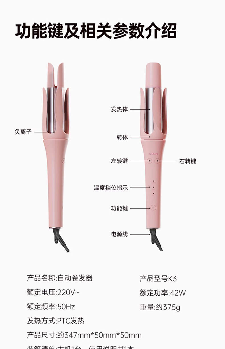 金稻 自动卷发棒 K3 42W 粉色(单位:台)