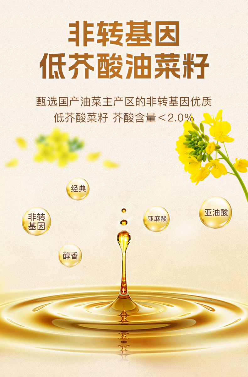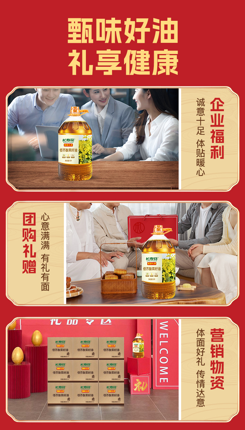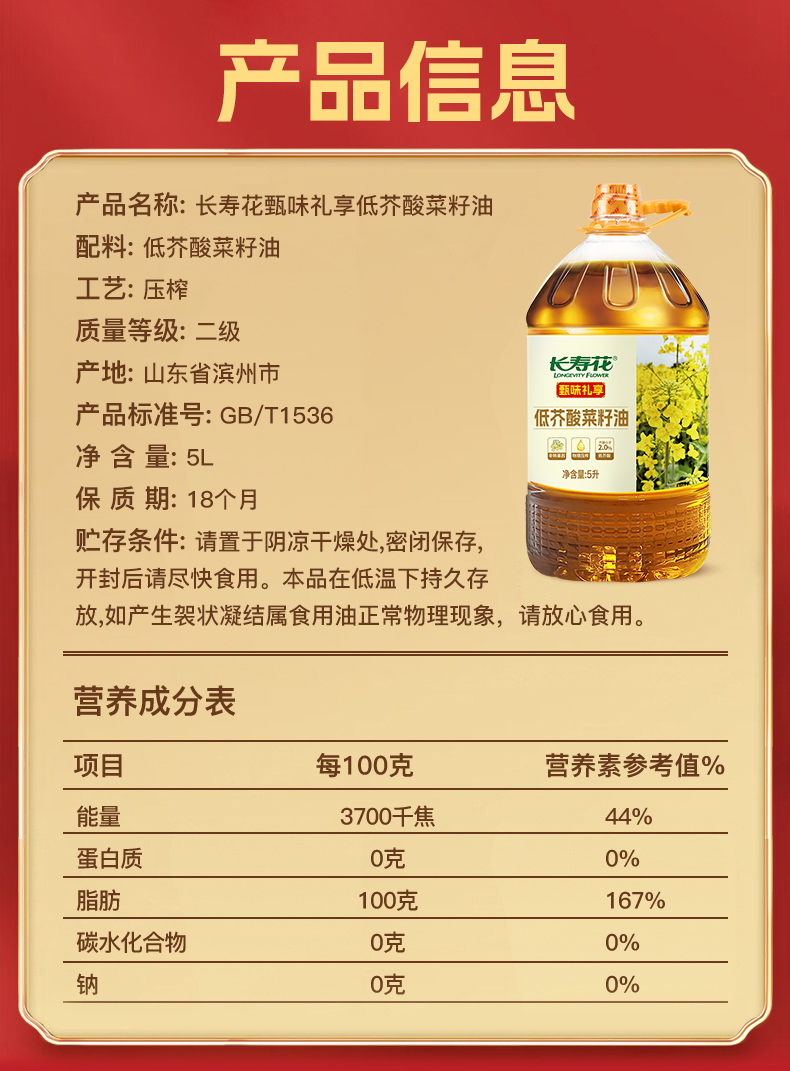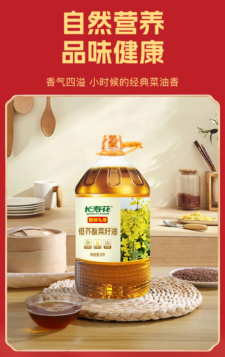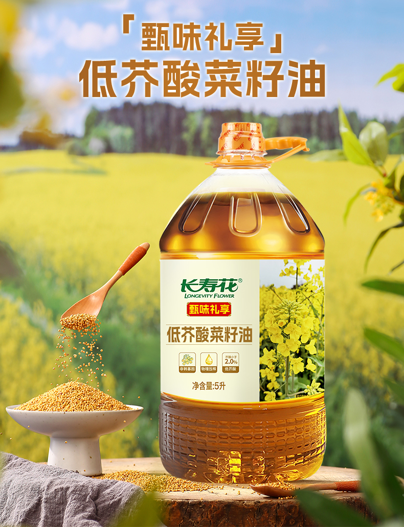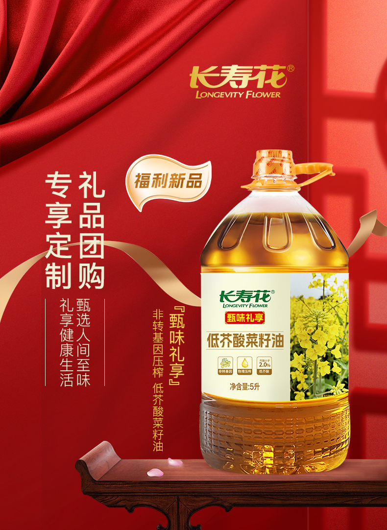 长寿花 物理压榨食用油低芥酸菜籽油 甄味礼享 5L 混色(单位:桶)