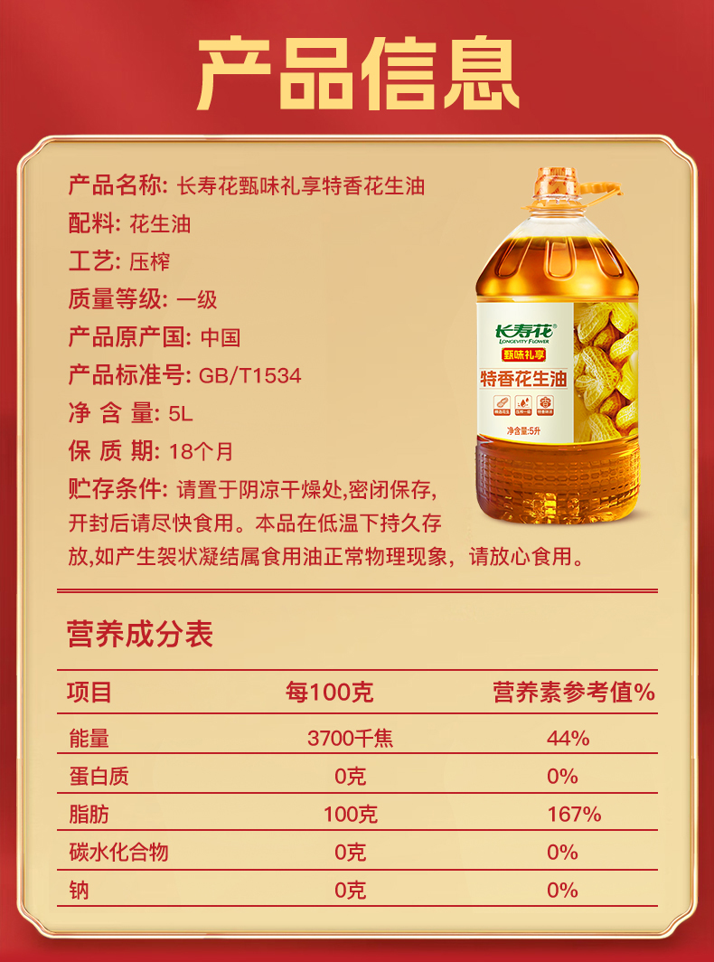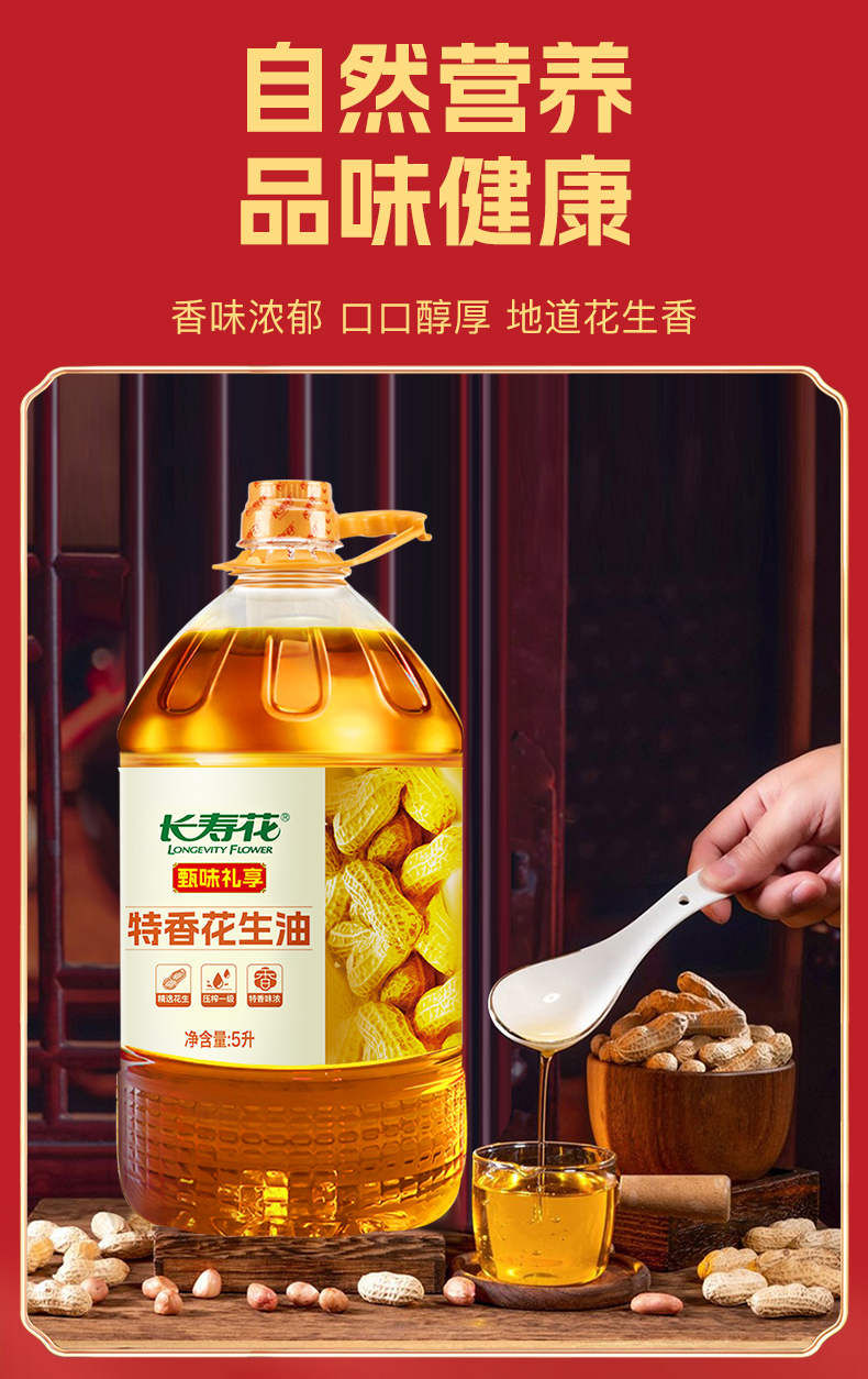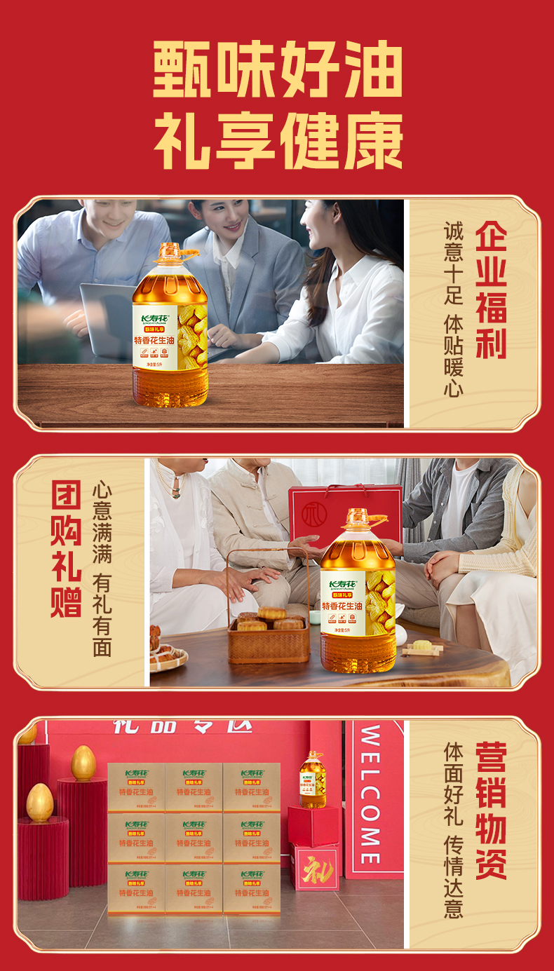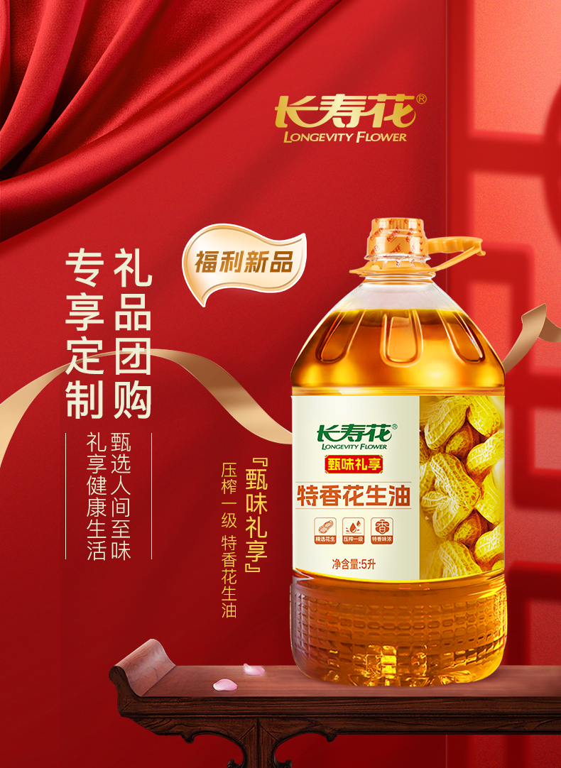 长寿花 特香花生油物理压榨食用油 甄味礼享 5L 混色(单位:桶)