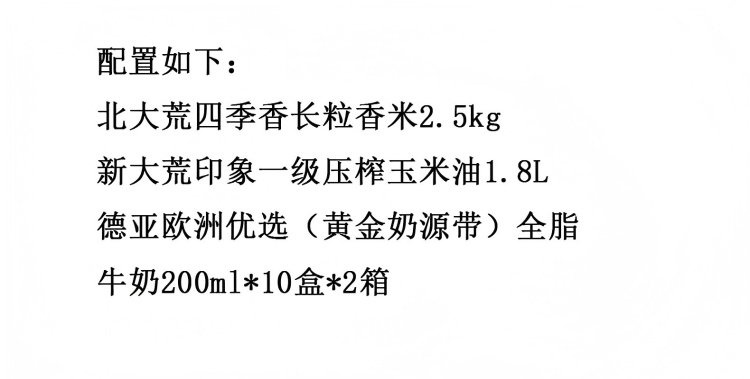北大荒 /大荒印象/德亚 粮油食品组合A款 2.5kg+5.8L 松石绿(单位:箱)