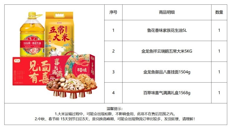 鲁花 /金龙鱼/百草味 粮油食品组合 5L+8.072KG 混色(单位:套)