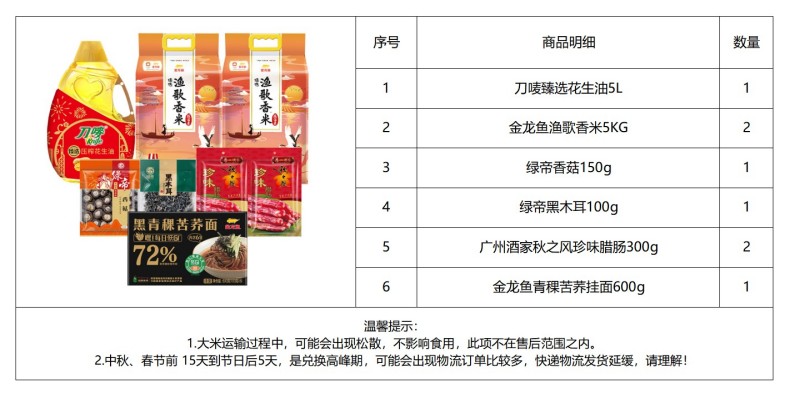 刀唛(Knife) /金龙鱼/广州酒家/绿帝 粮油干货组合 11.15KG+5L 混色(单位:套)