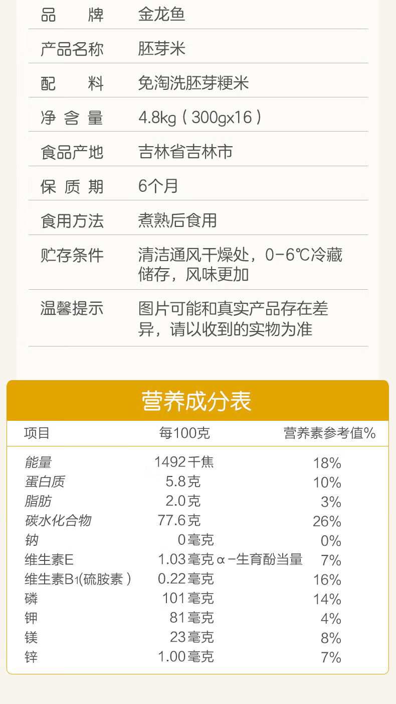 金龙鱼 大米 胚芽米 300g*16 白色(单位:盒)
