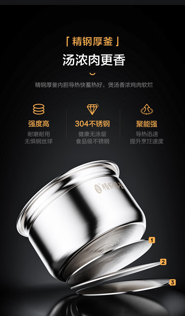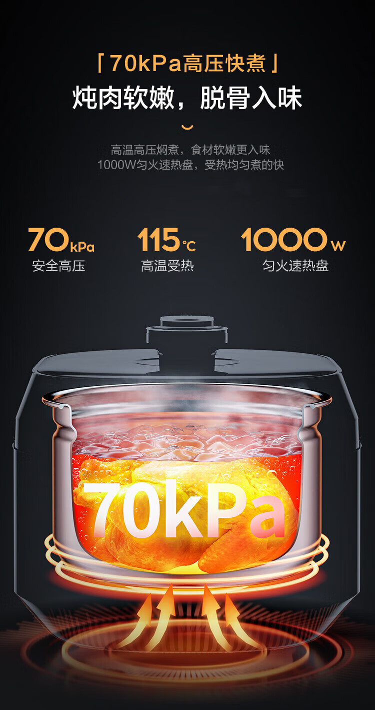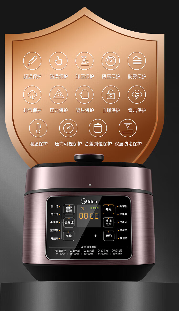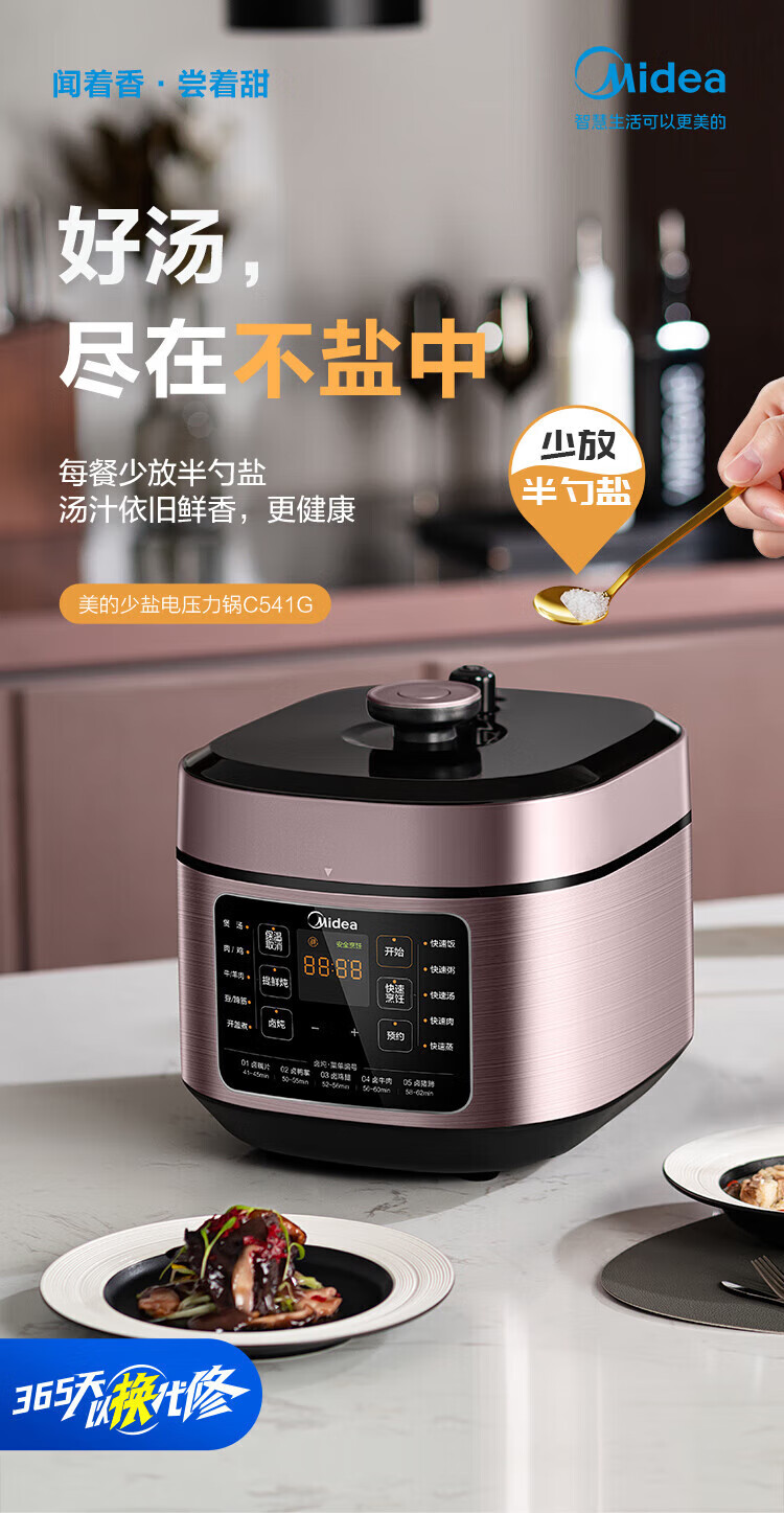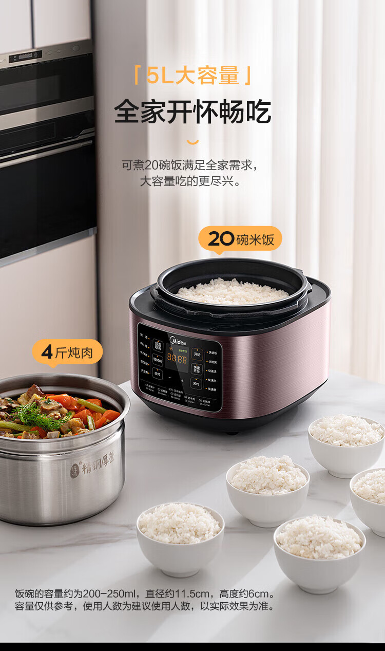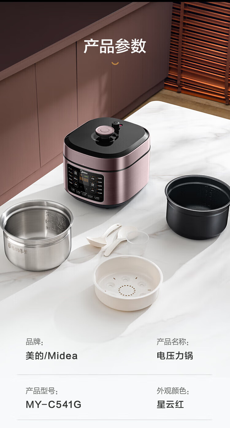 美的(Midea)电压力锅家用高压锅 5升容量双胆 MY-C541G(单位:台) 拿铁色