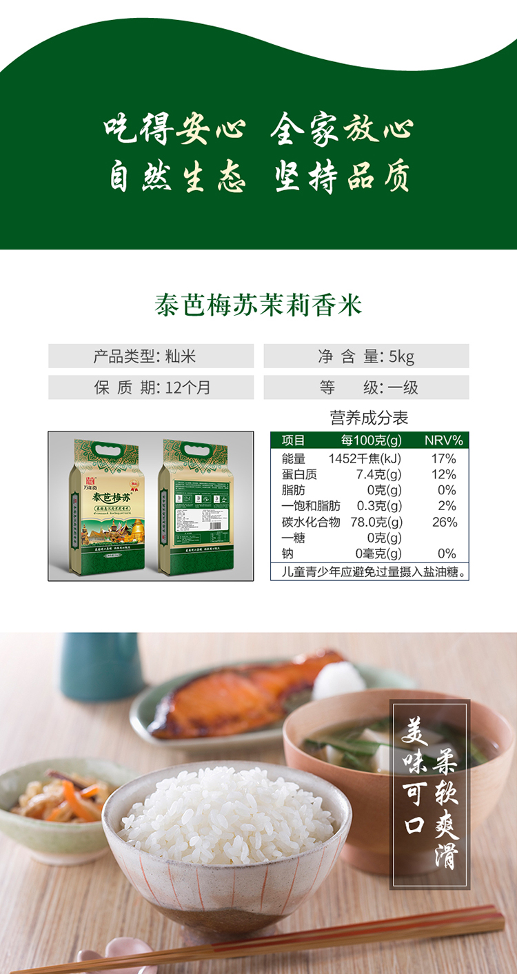 万年贡 泰芭梅苏 甄选泰国乌汶府茉莉香米 5KG 军绿色(单位:袋)