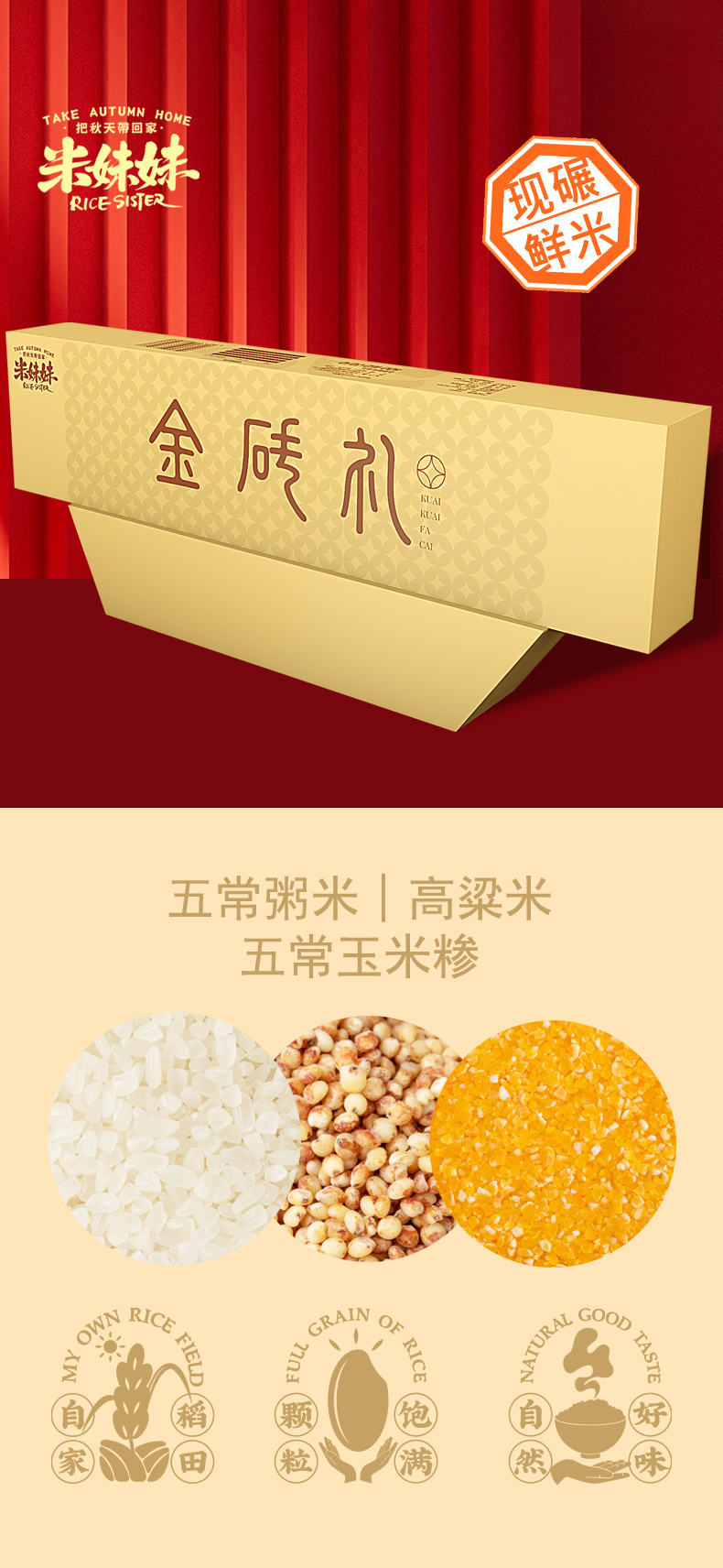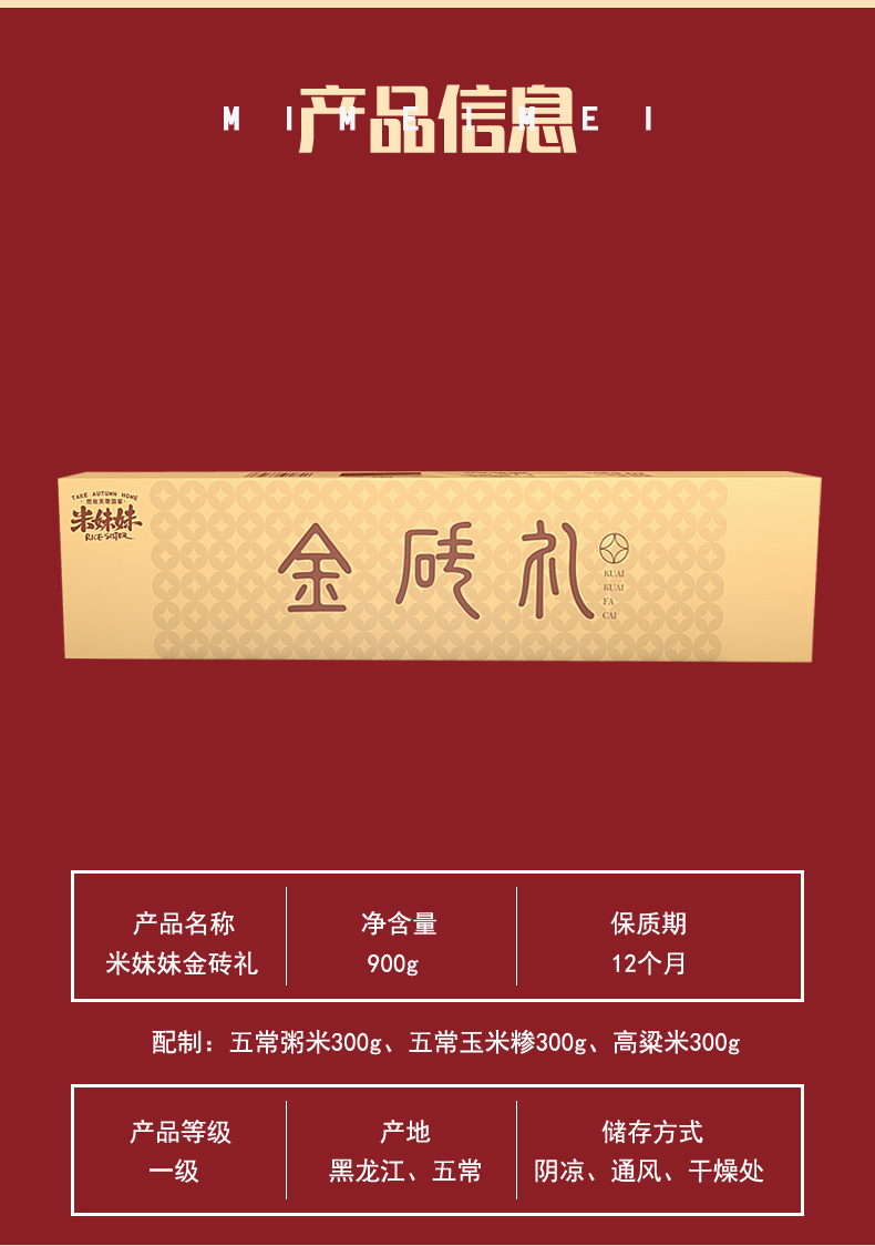 米妹妹(MIMEIMEI) 大米组合 金砖礼 900g 金色(单位:盒)