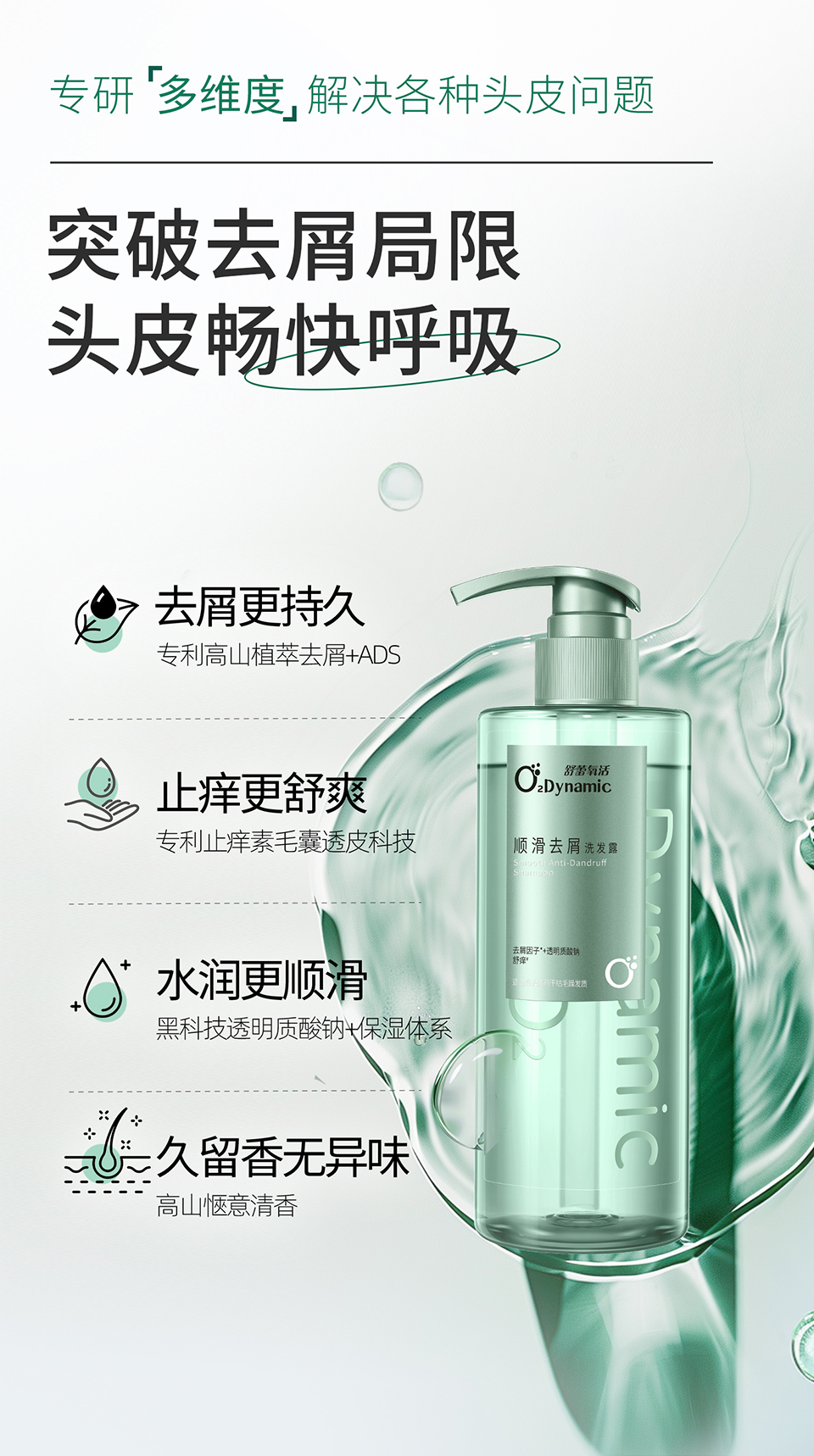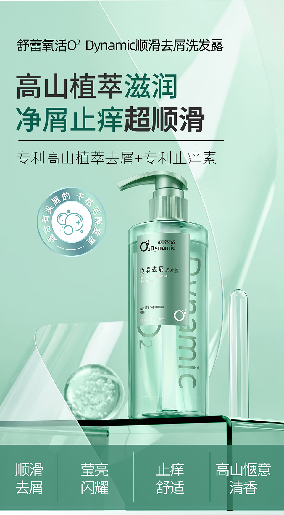 舒蕾 洗发水 氧活O₂ Dynamic 顺滑去屑750g 绿色(单位:瓶)