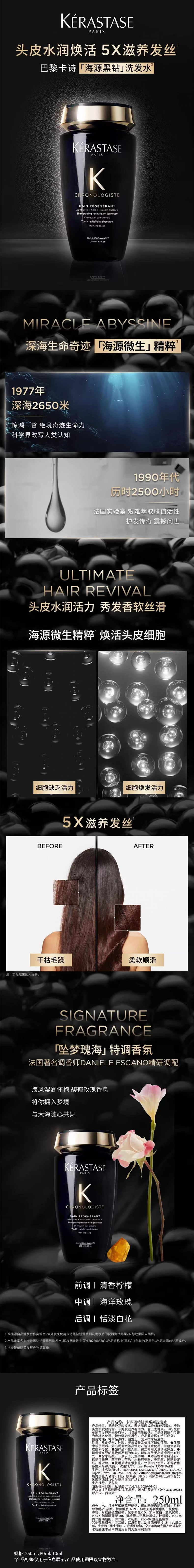 卡诗(KERASTASE) 黑钻钥源洗发水气垫梳组合 奢享洗护 250ml*2 黑色(单位:盒)