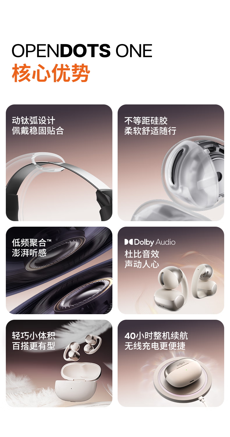 韶音(SHOKZ) 蓝牙耳机耳夹式 E310 52g 白色(单位:个)
