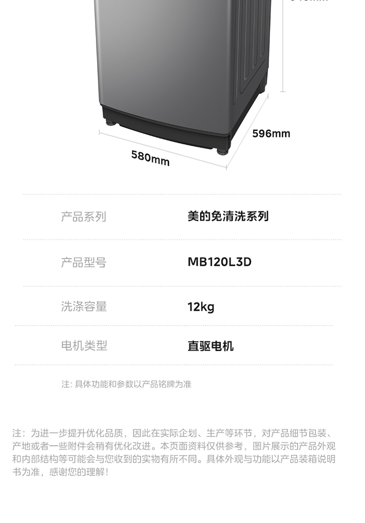 美的(Midea) 洗衣机 MB120L3D 12kg 玄武灰(单位:台)