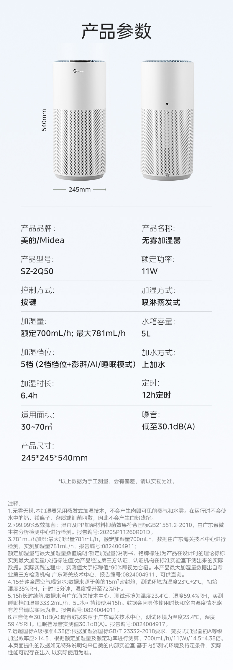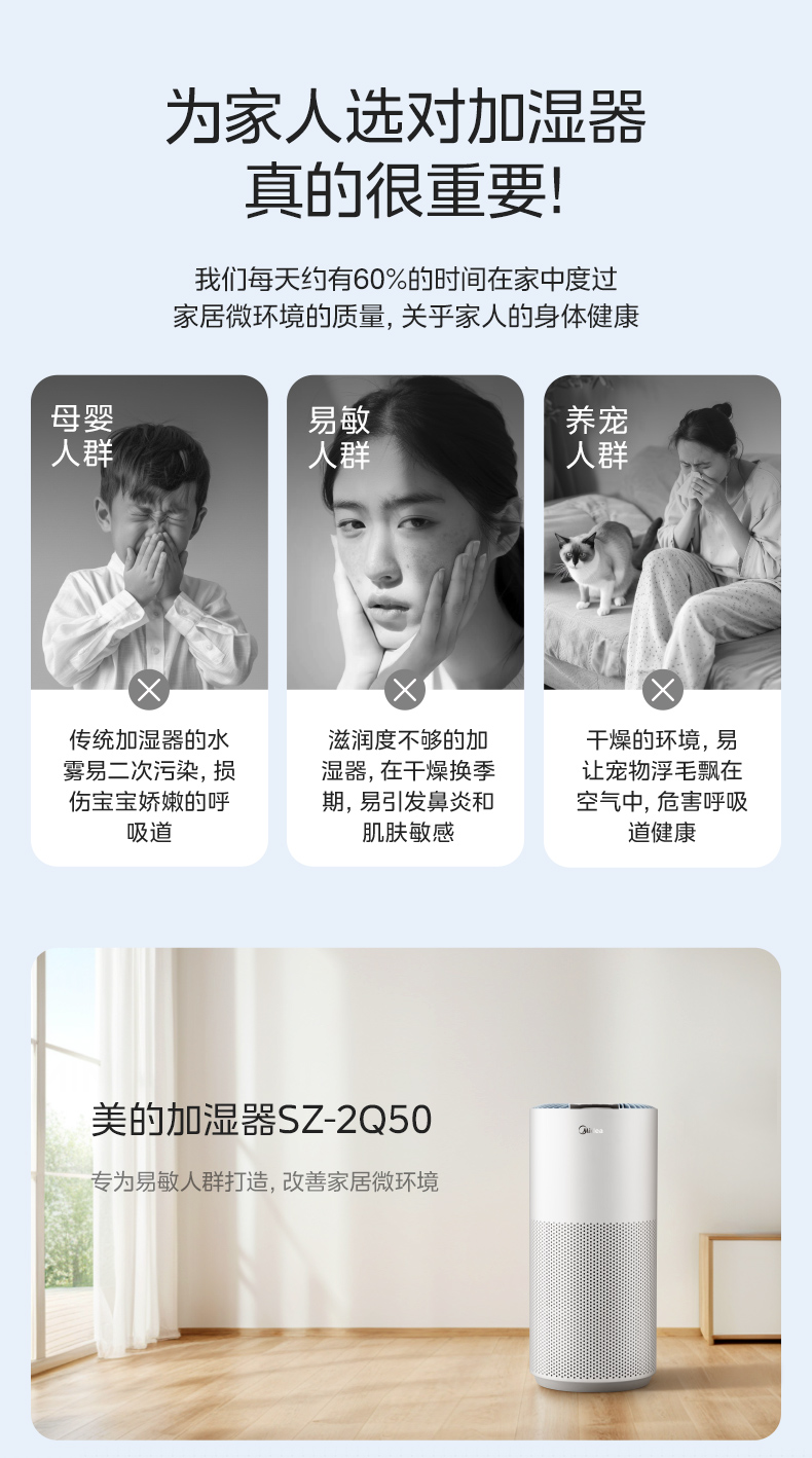 美的(Midea) 加湿器 SZ-2Q50 容量5L 白色(单位:台)