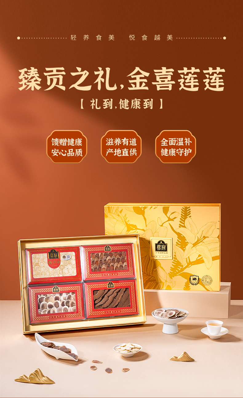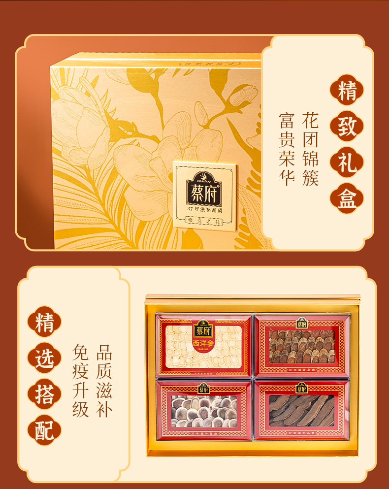 蔡府(CHAIFOO) 滋补干货鹿茸红参西洋参灵芝 金喜莲莲礼盒 120g 混色(单位:盒)