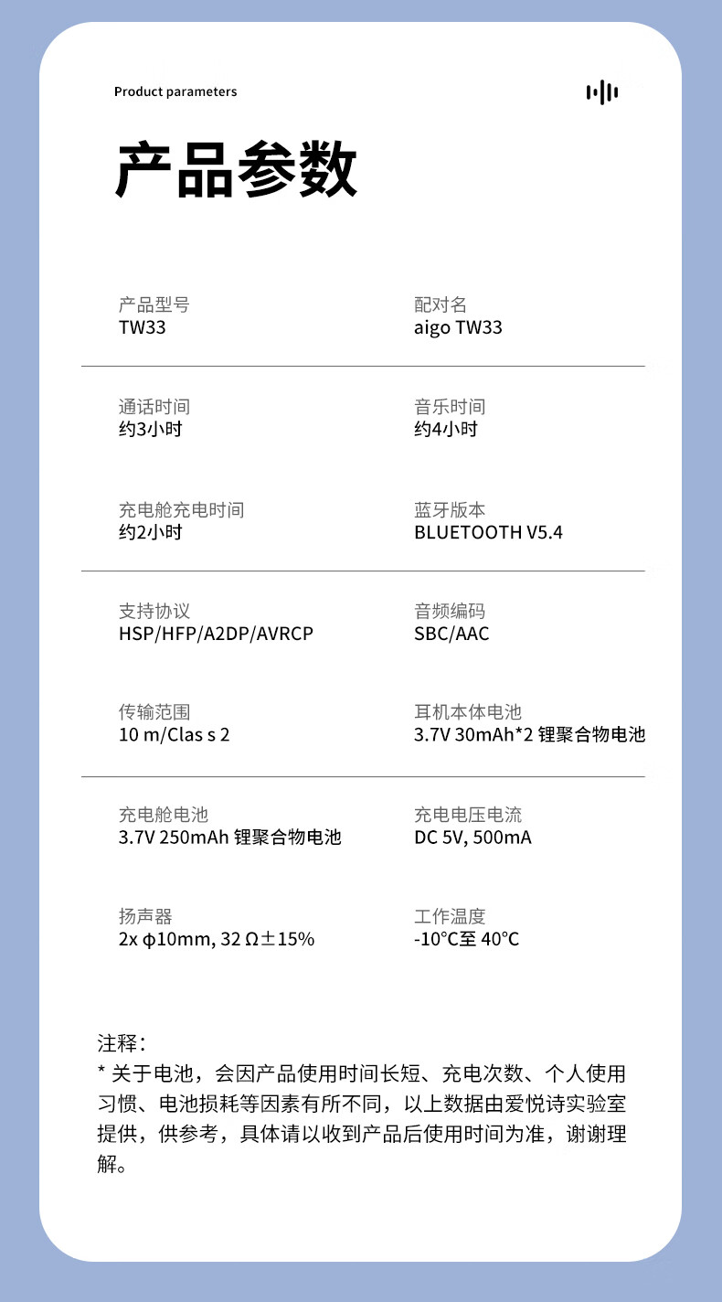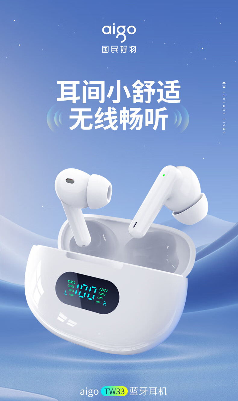 爱国者(aigo) 蓝牙耳机 TW33 充电电流500mA 白色(单位:副)