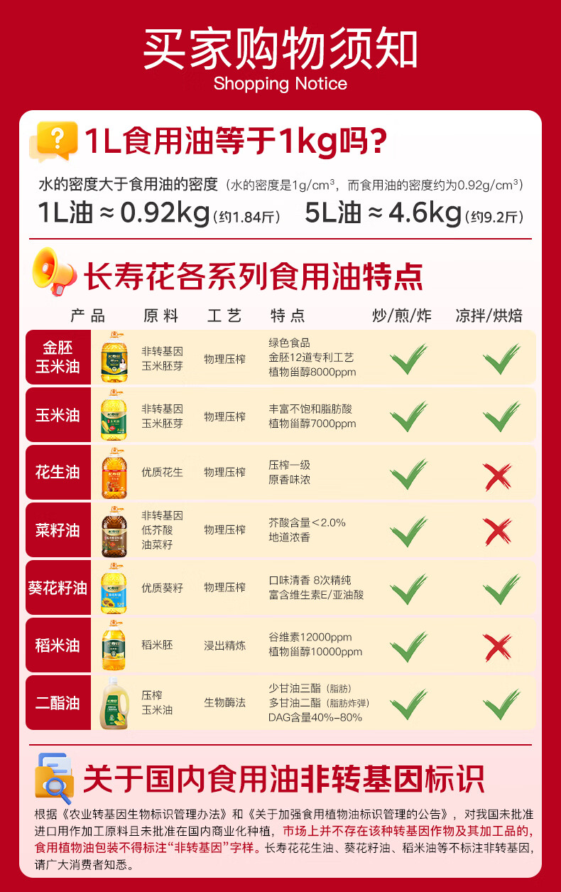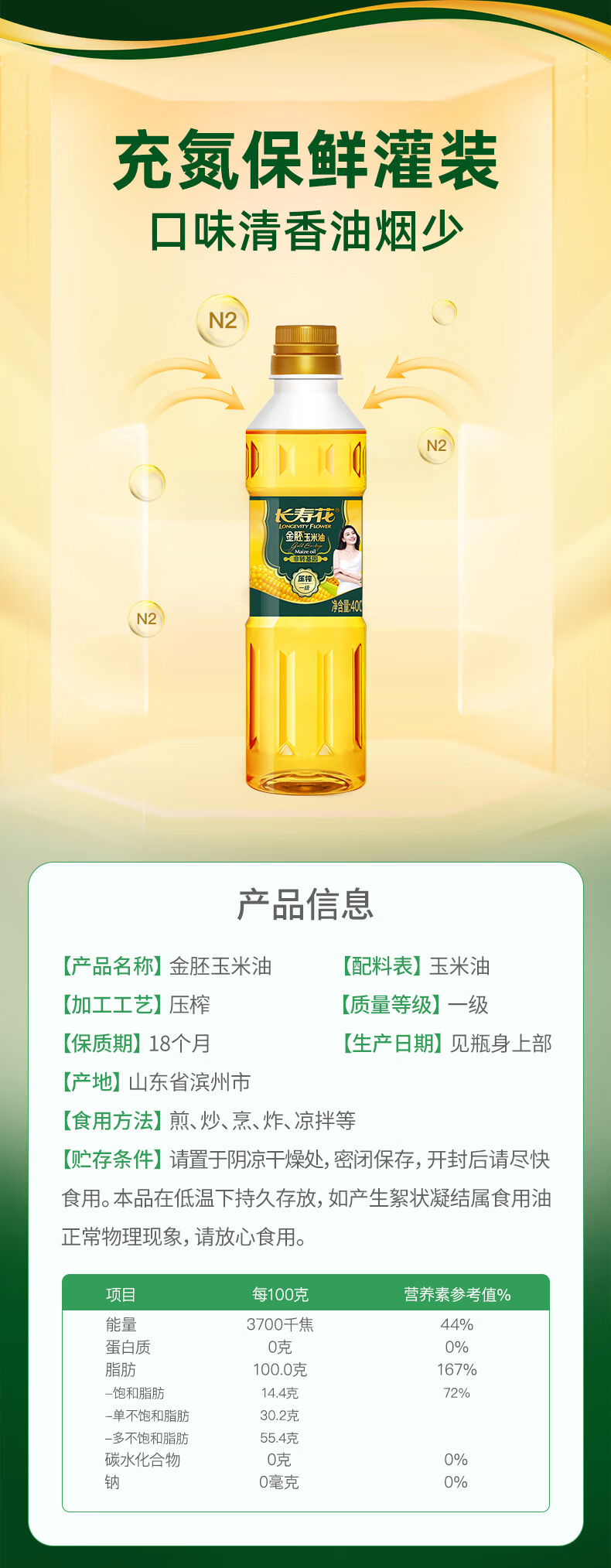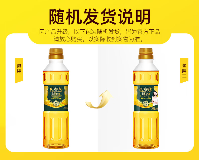 长寿花 非转基因压榨一级 金胚玉米油 400ml*1瓶 混色(单位:瓶)