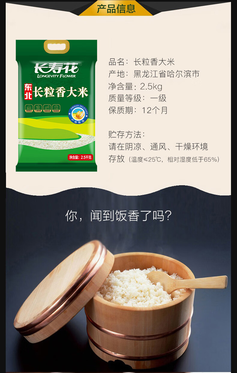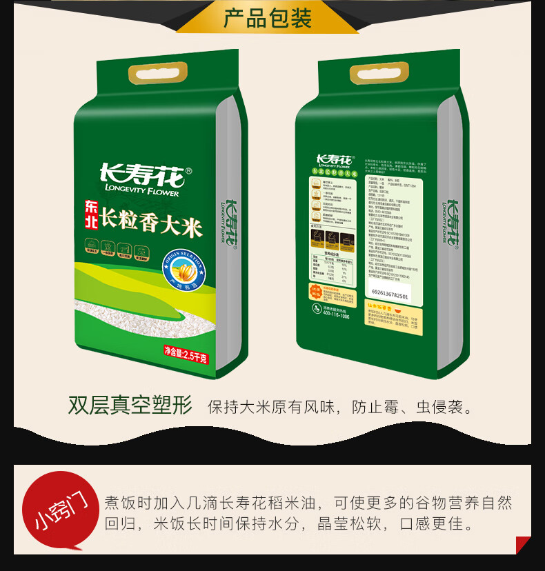 长寿花 香糯润滑 长粒香大米 2.5kg*1袋 绿色(单位:袋)