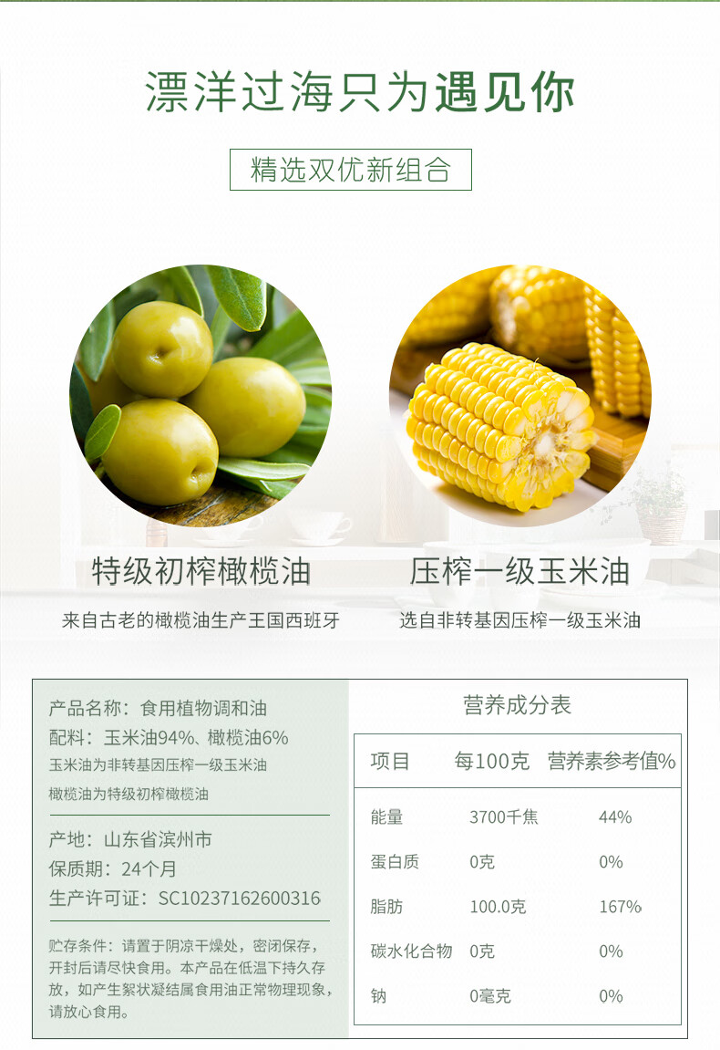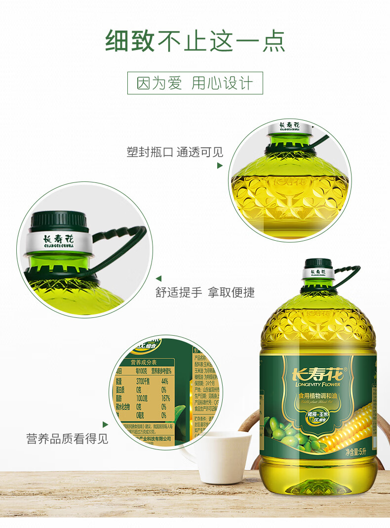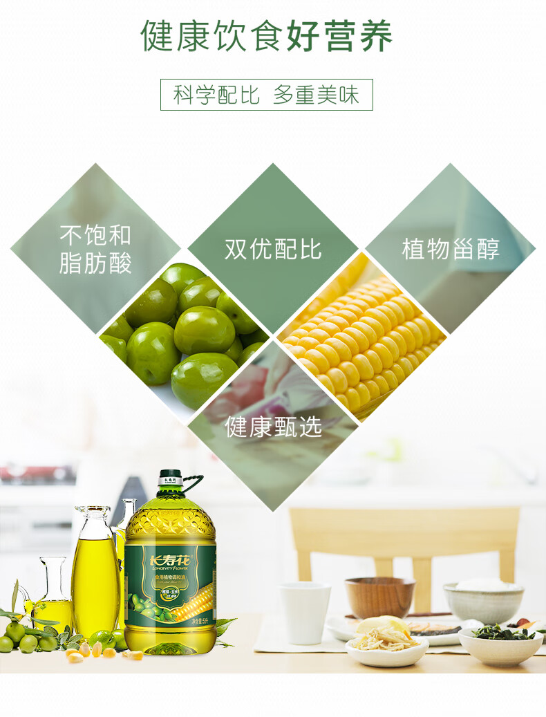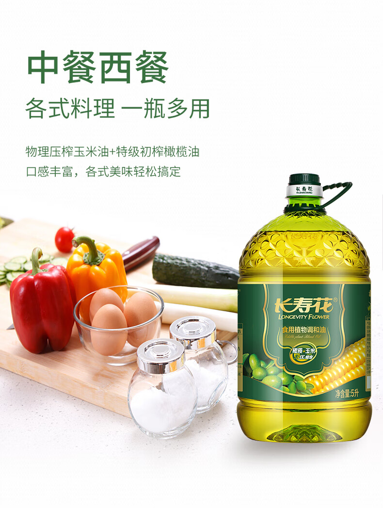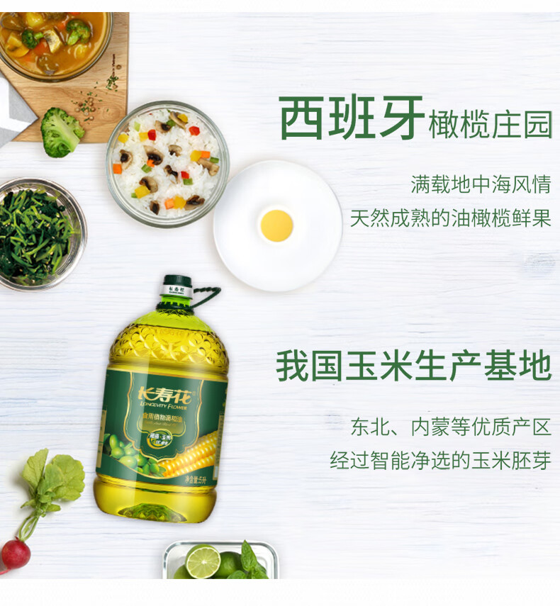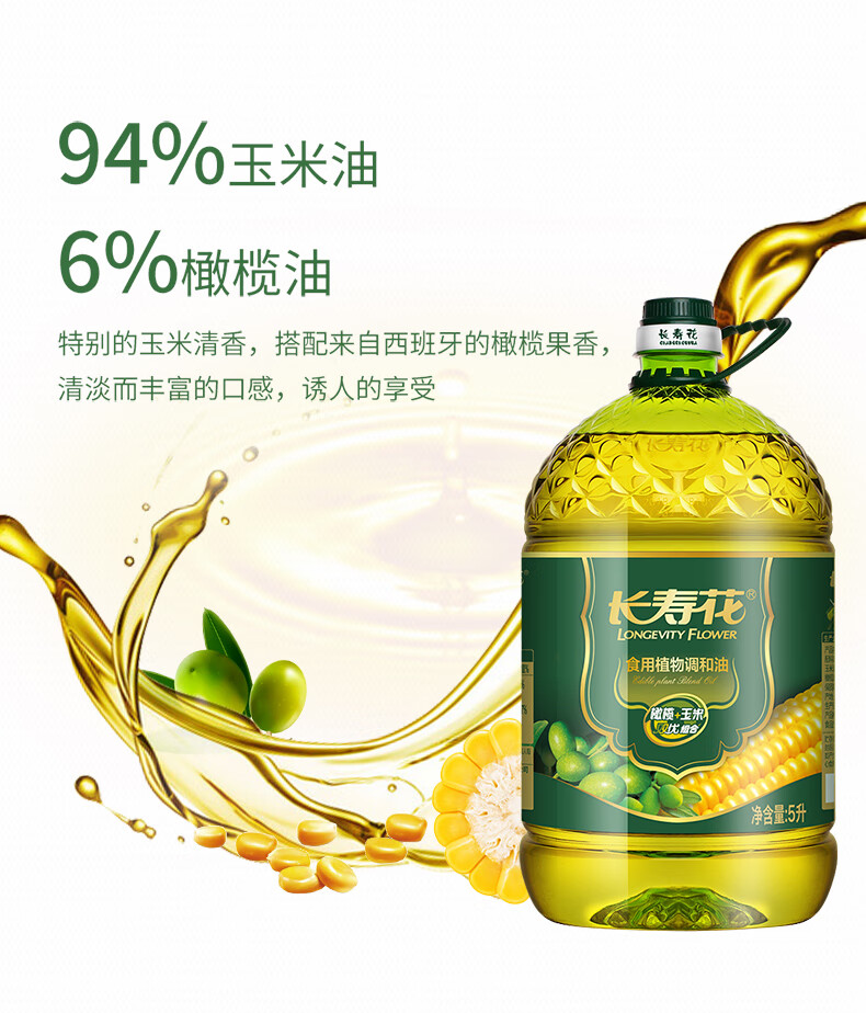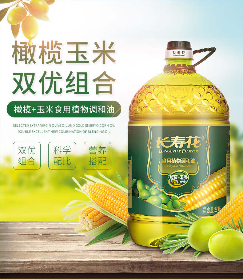 长寿花 食用植物调和油 橄榄玉米双优组合 5L*1桶 混色(单位:桶)