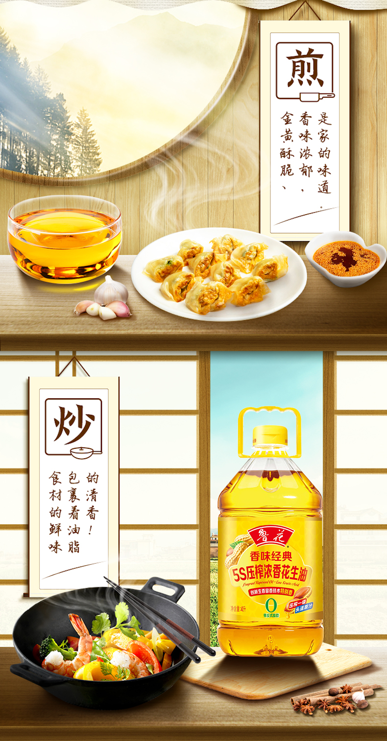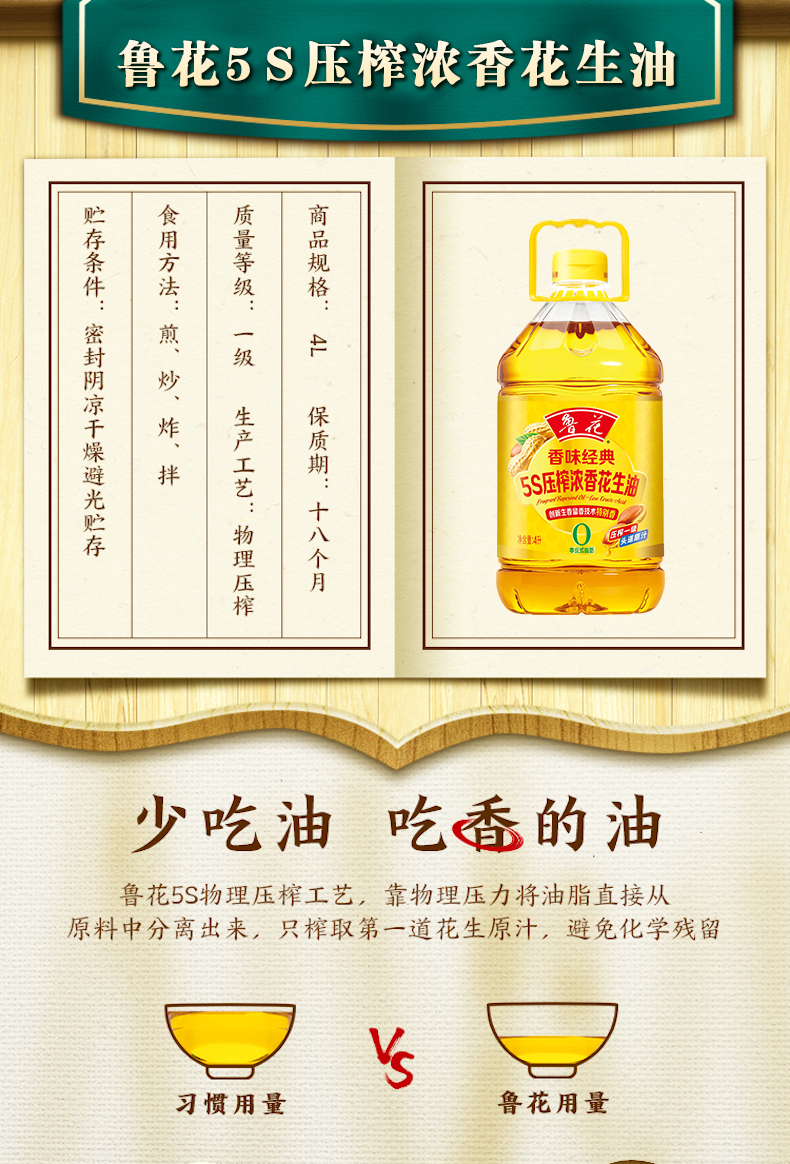 鲁花 5S压榨浓香花生油 香味经典 4L 金色(单位:瓶)