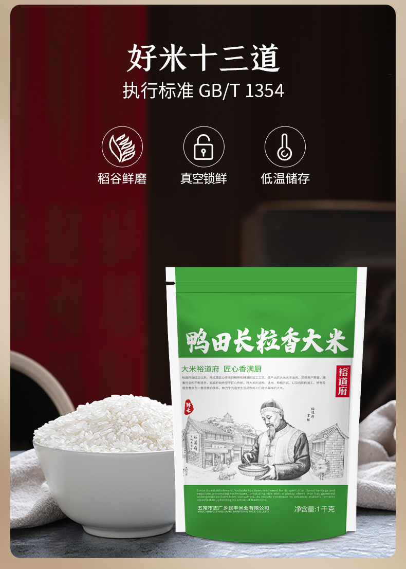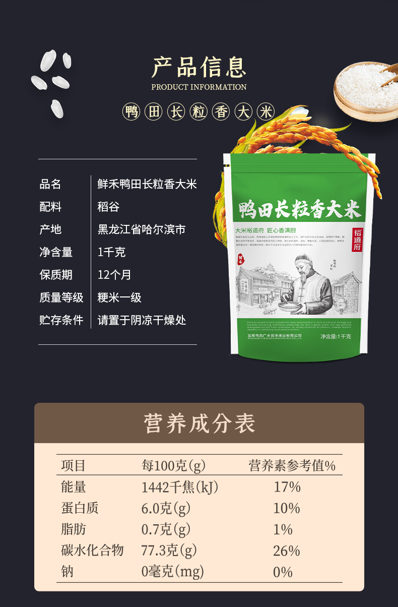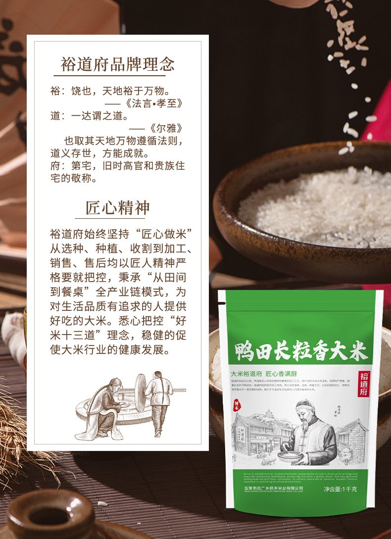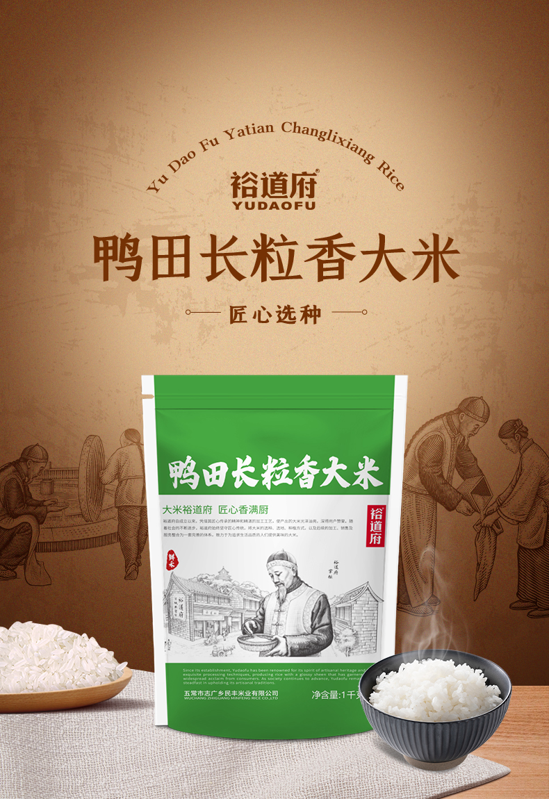 裕道府 鲜禾鸭田 长粒香大米 1kg 雾雨绿(单位:袋)